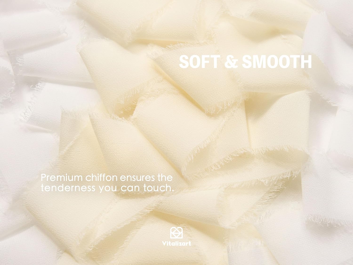 - Premium silk-like chiffon fabric ribbon. Very sheer, soft and easy to cut.