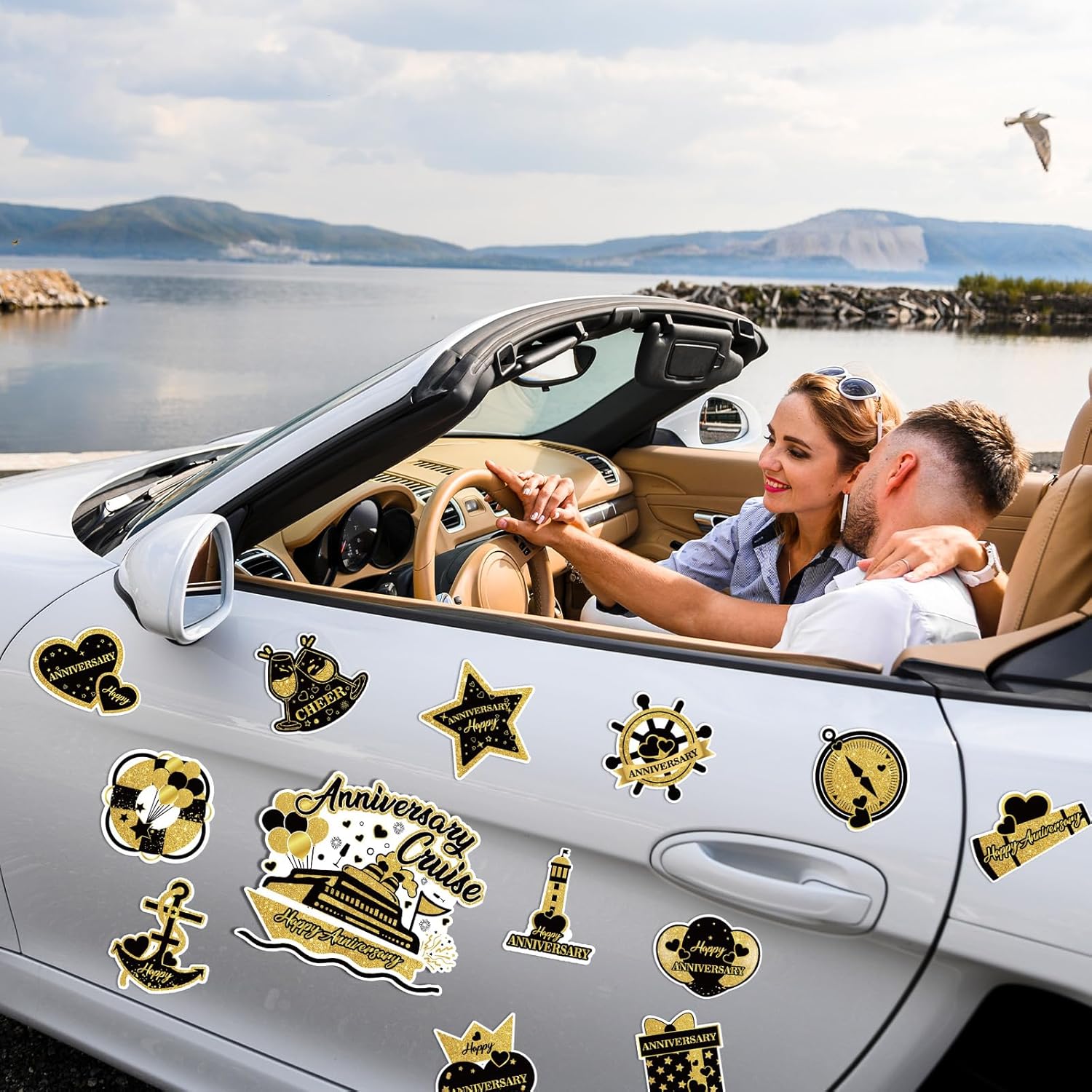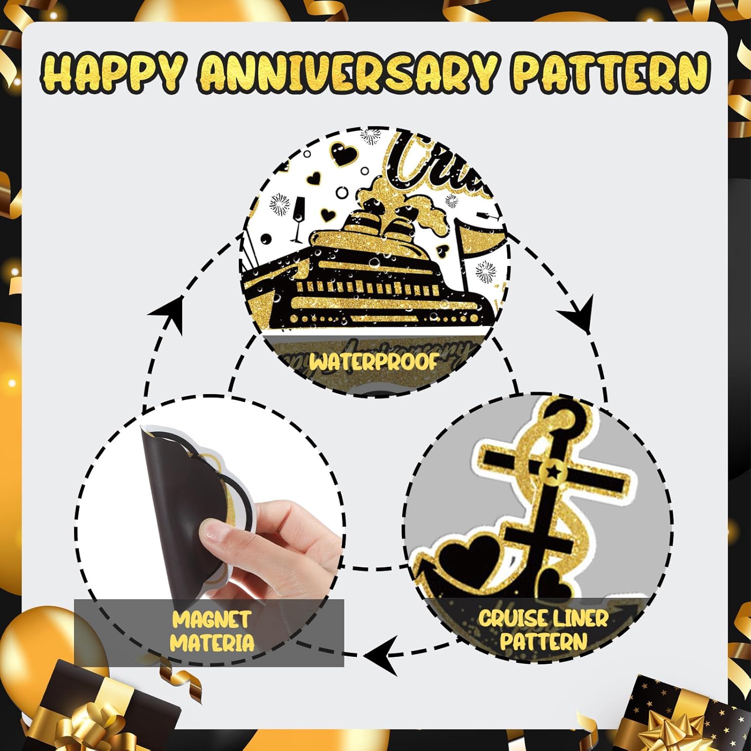 - 💝Cruise Door Magnets Decorations:You will get 16pcs of Black Gold Happy Anniversary Cruise Door Magnets.These Happy Anniversary Cruise Door Magnets have "Happy Anniversary Cruise" and many shapes.With these beautiful happy anniversary magnets decorations, they further set off a atmosphere of your anniversary party.
