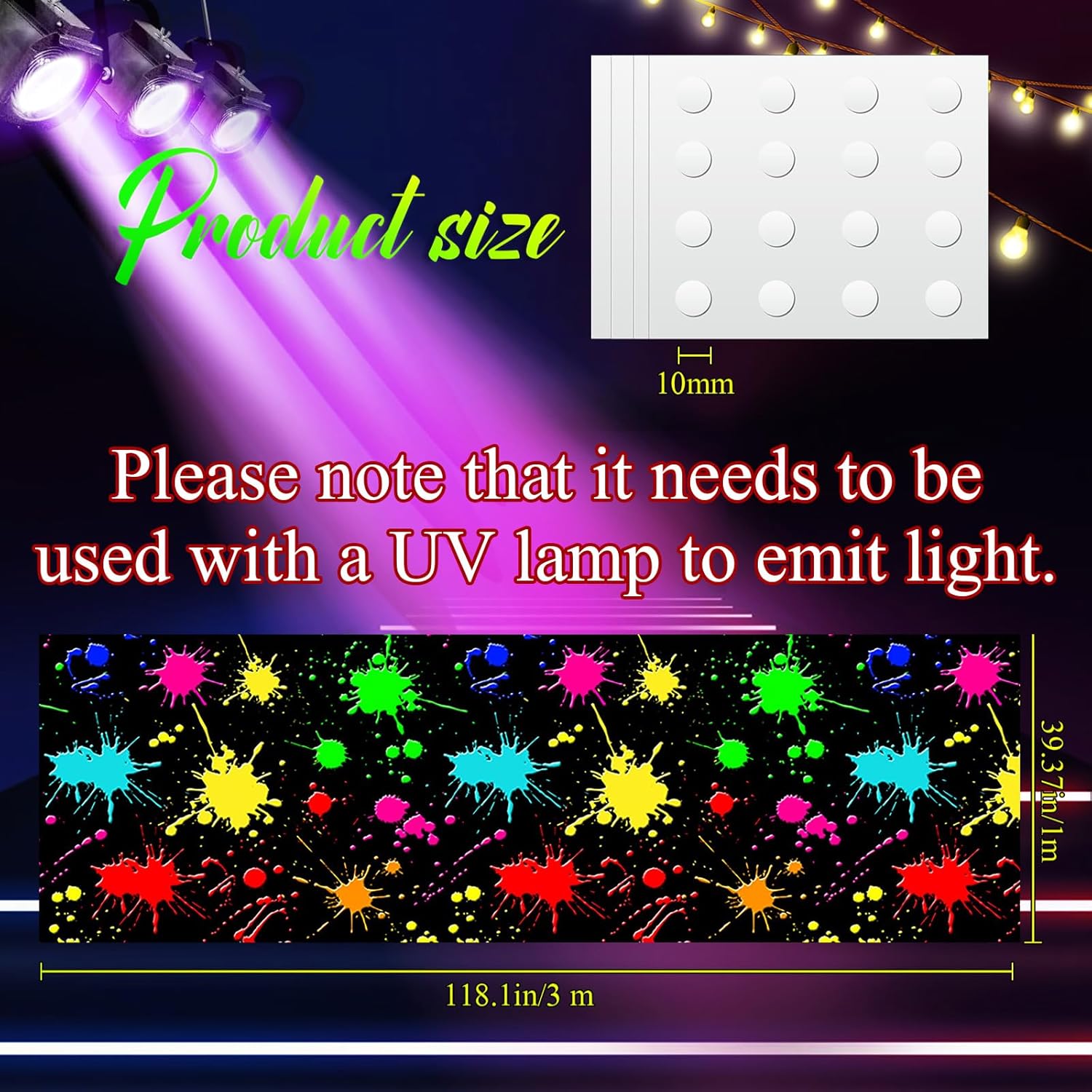 Haull 118 x 39 Inch Neon Light up Dance Floor Glow in The Dark Runner UV Reactive Blacklight Floor Aisle Runner Decor Wall Props for 80s 90s Neon Birthday Party Decorations(Paint Splatter)