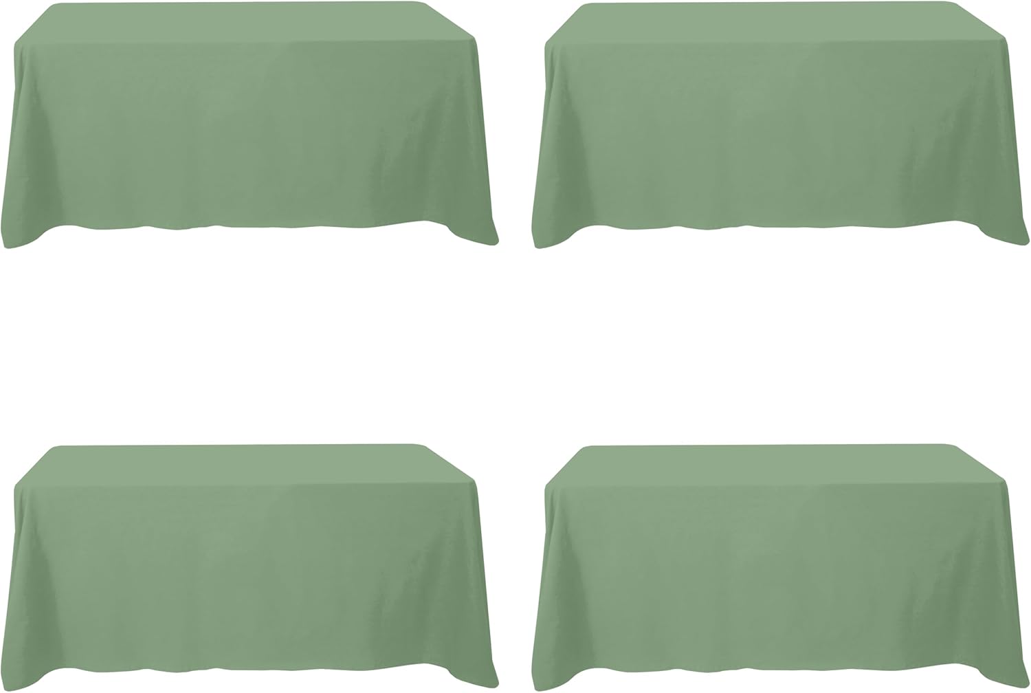 BRILLMAX 4 Pack Sage Green Tablecloths for 6 Foot Rectangle Tables 90 x 132 Inch - 6ft Rectangular Bulk Linen Polyester Fabric Washable Cloth Cover for Wedding Reception Banquet Birthday Party