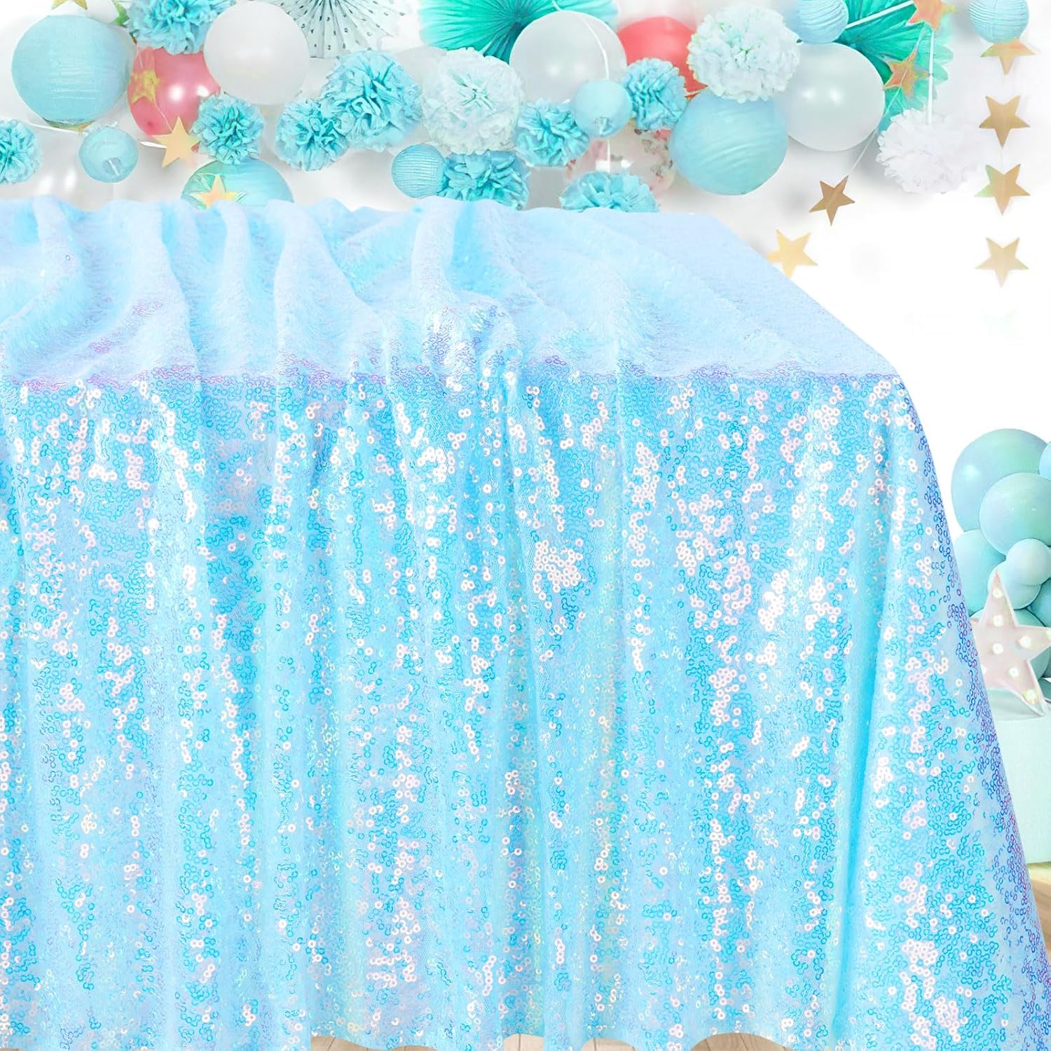 Glitter Blue Tablecloth 50x80 Inch Iridescent for Anniversary Birthday Baptism Mermaid Ocean Theme