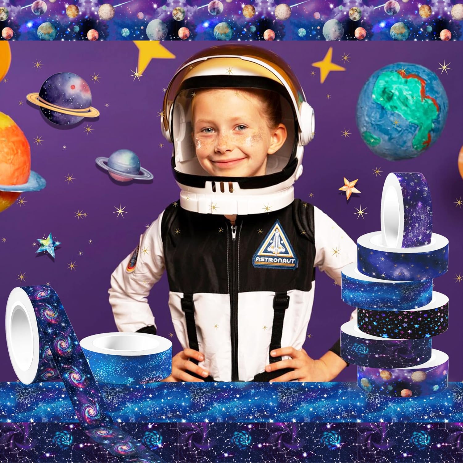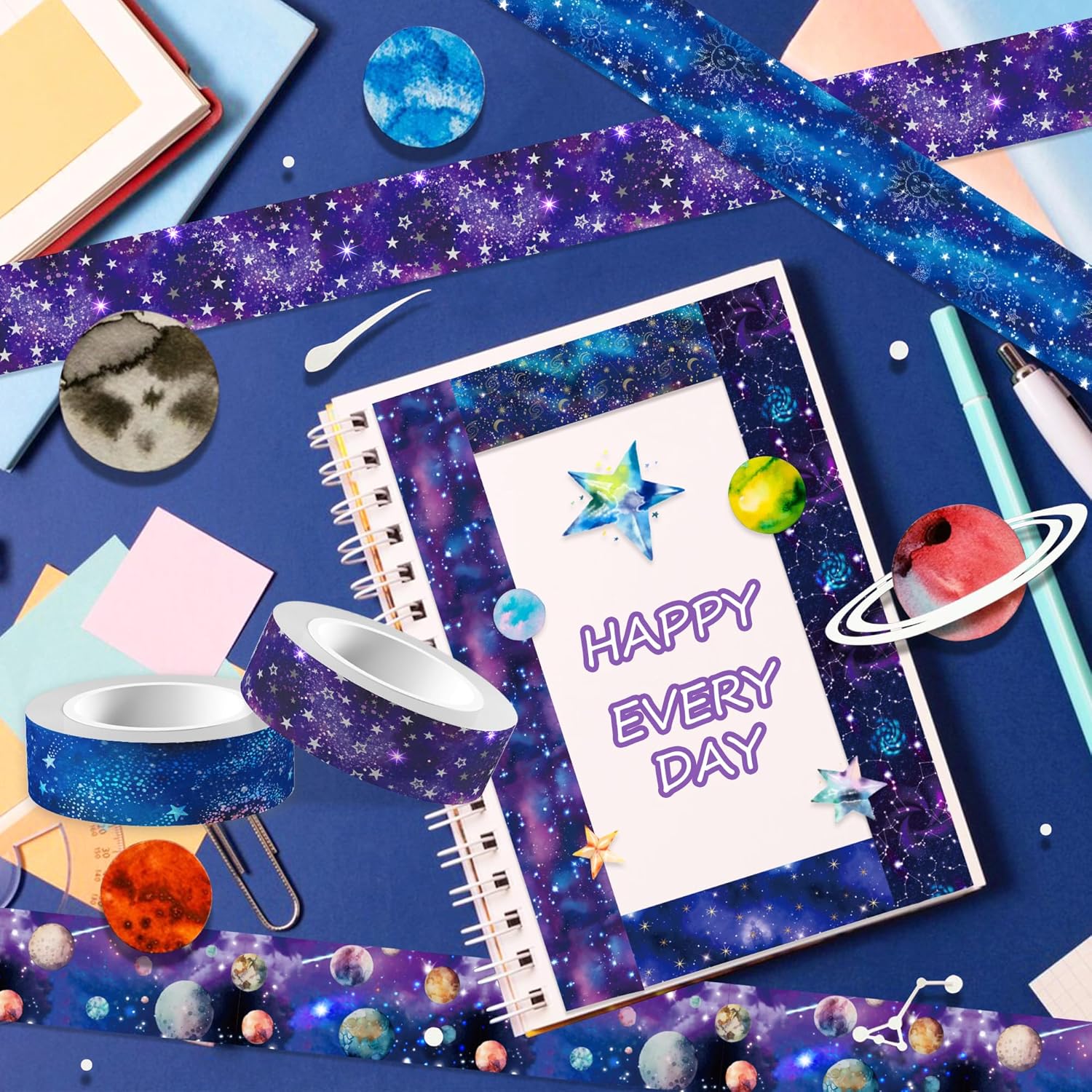 - What you Get: 12 rolls of galaxy washi tape with different styles.If you receive the goods have any do not like, or product the problem, we will provide you with a return service, you can contact us by e-mail