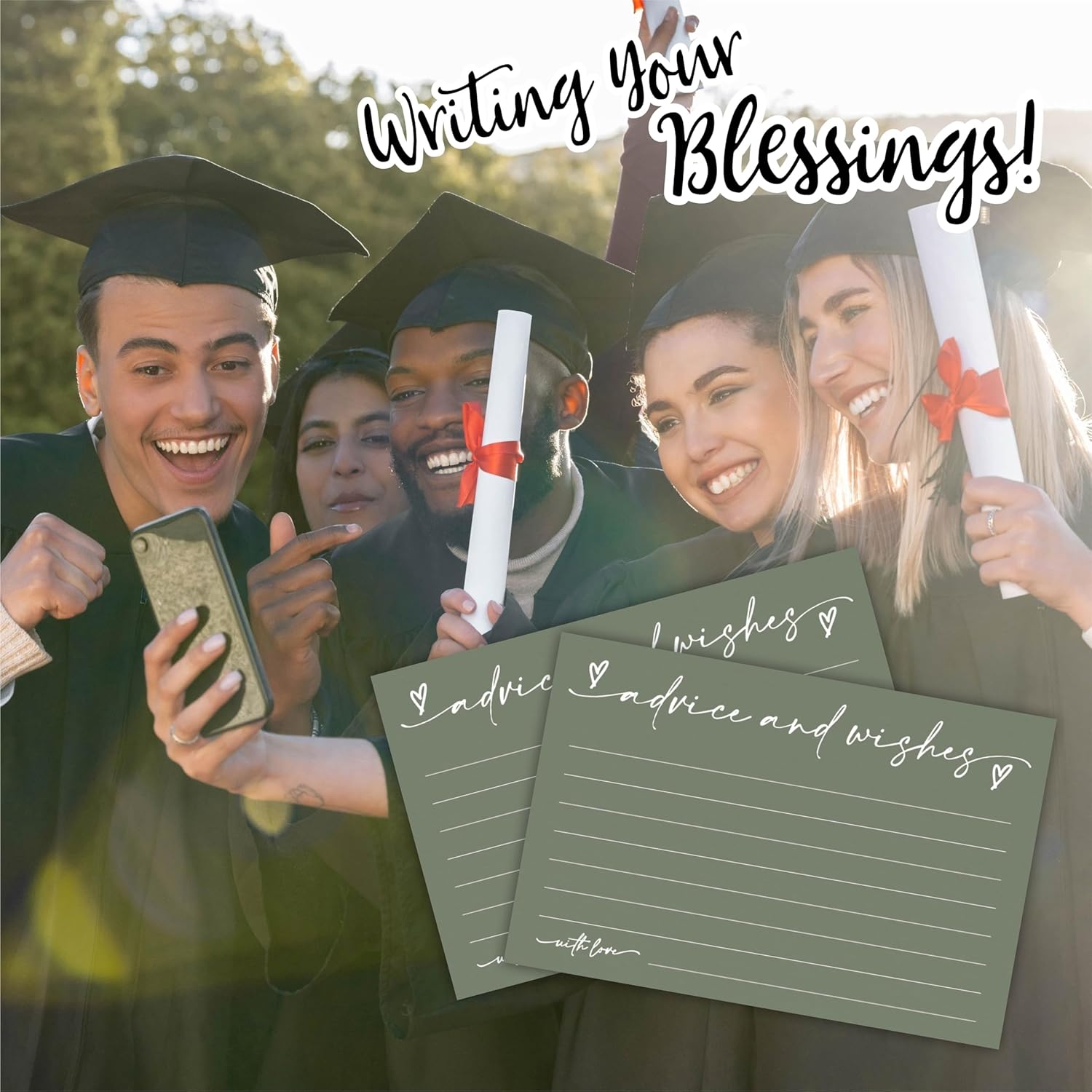 30 Advice & Wishes Cards - Olive Green - Double Sided Fill-In Advice Cards For Bridal, Wedding, Graduate Party, Mr & Mrs, Retirement, Baby Shower, Party Favor & Supplies - B03