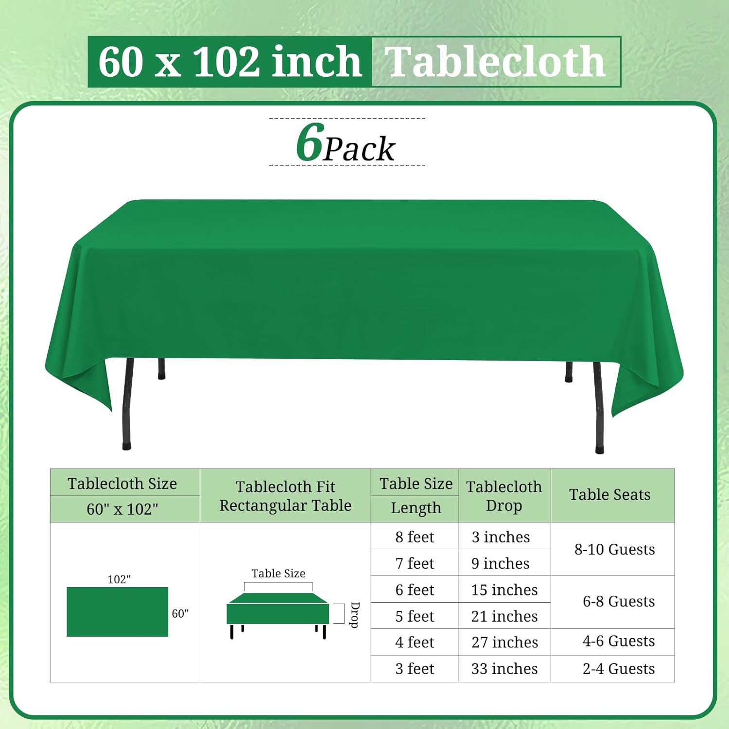 - 【Superior Tablecloth Material】: You will get 6 pack green tablecloth, this durable and easy to clean tablecloth is made from premium polyester fabric that resists wrinkling for an always crisp, polished look. Providing more convenience for your using and cleaning. Durable for repeat use.