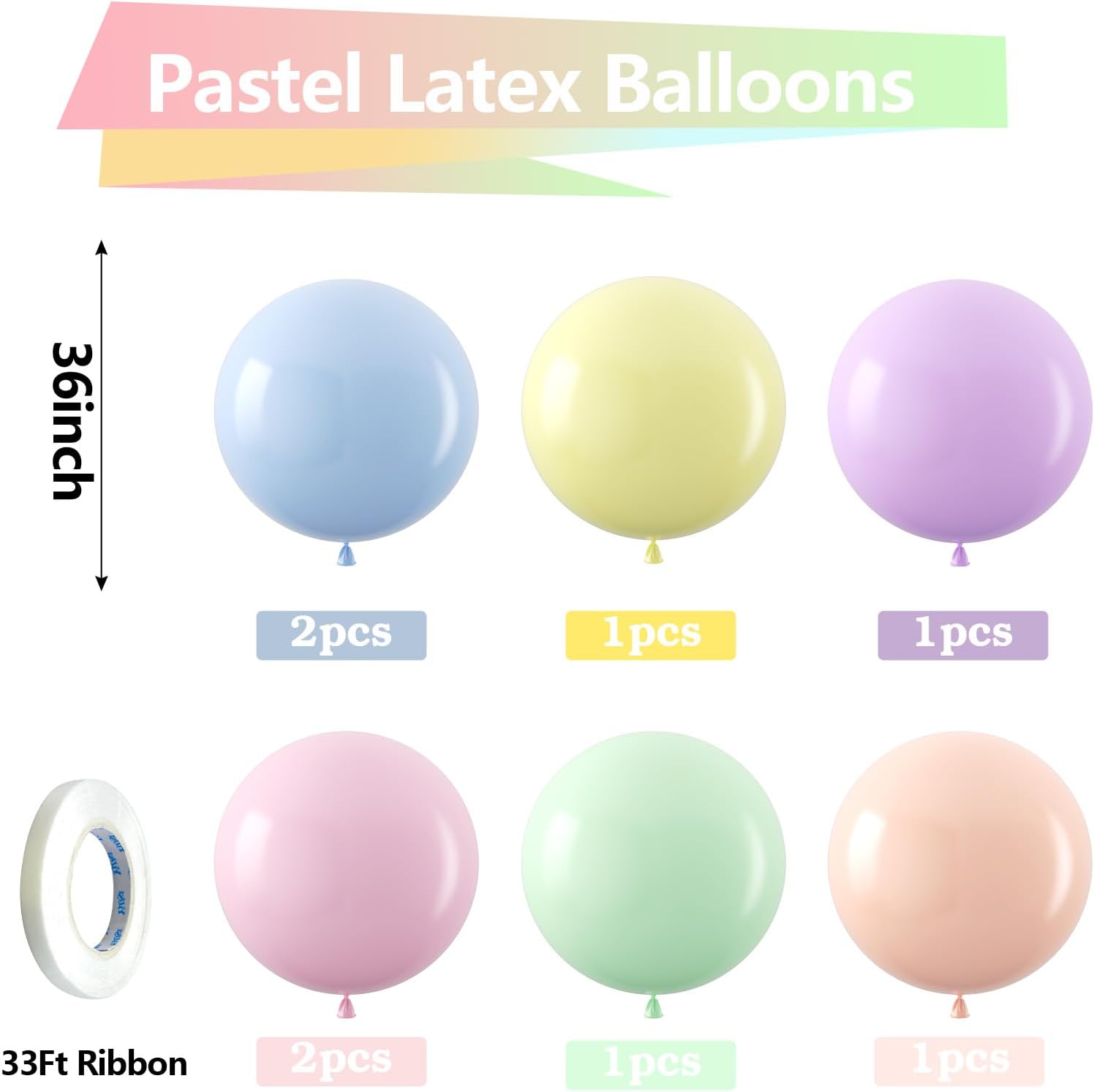 - ăSet Includesă- Each sets contains 8pcs 36 inch large pastel color balloons and 1pcs white ribbon (33 feet total). The right amount quantity and most suitable color for each party decoration.
