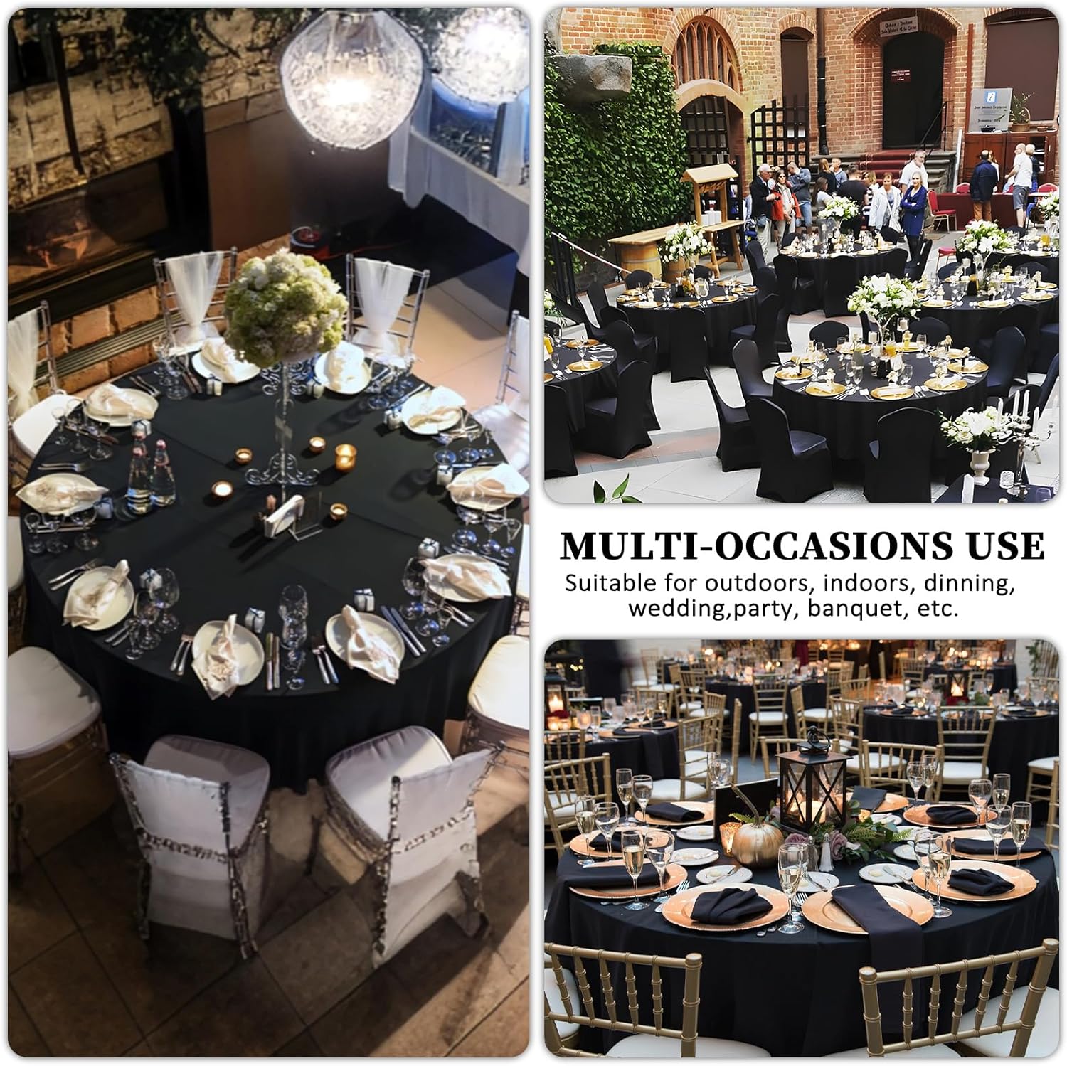 - Multiple Application: This round table cover is perfect for everyday use, birthday party, wedding, banquet, holidays, cafes, dinners, brunches, BBQ's, buffets, indoor and outdoor use, weddings and more. Decorate your dining tables, kitchen tables, outdoor picnic tables with Heneger black table cover and make them more elegant and stylish.