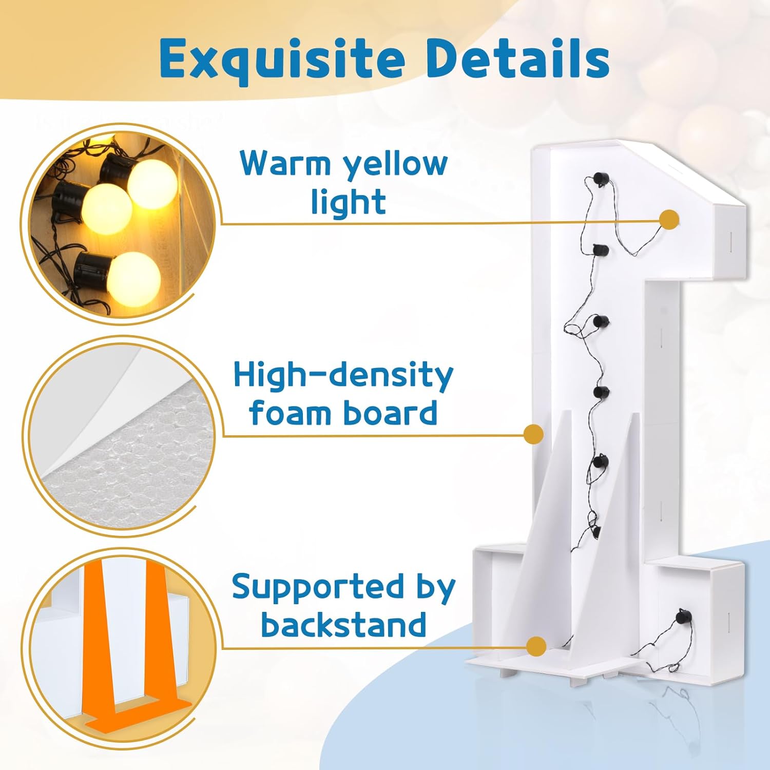 - Equipped with 2 Yellow Light Strings: Large marquee numbers include matching light strings, so you can say goodbye to the annoyances of incompatible light strings.
