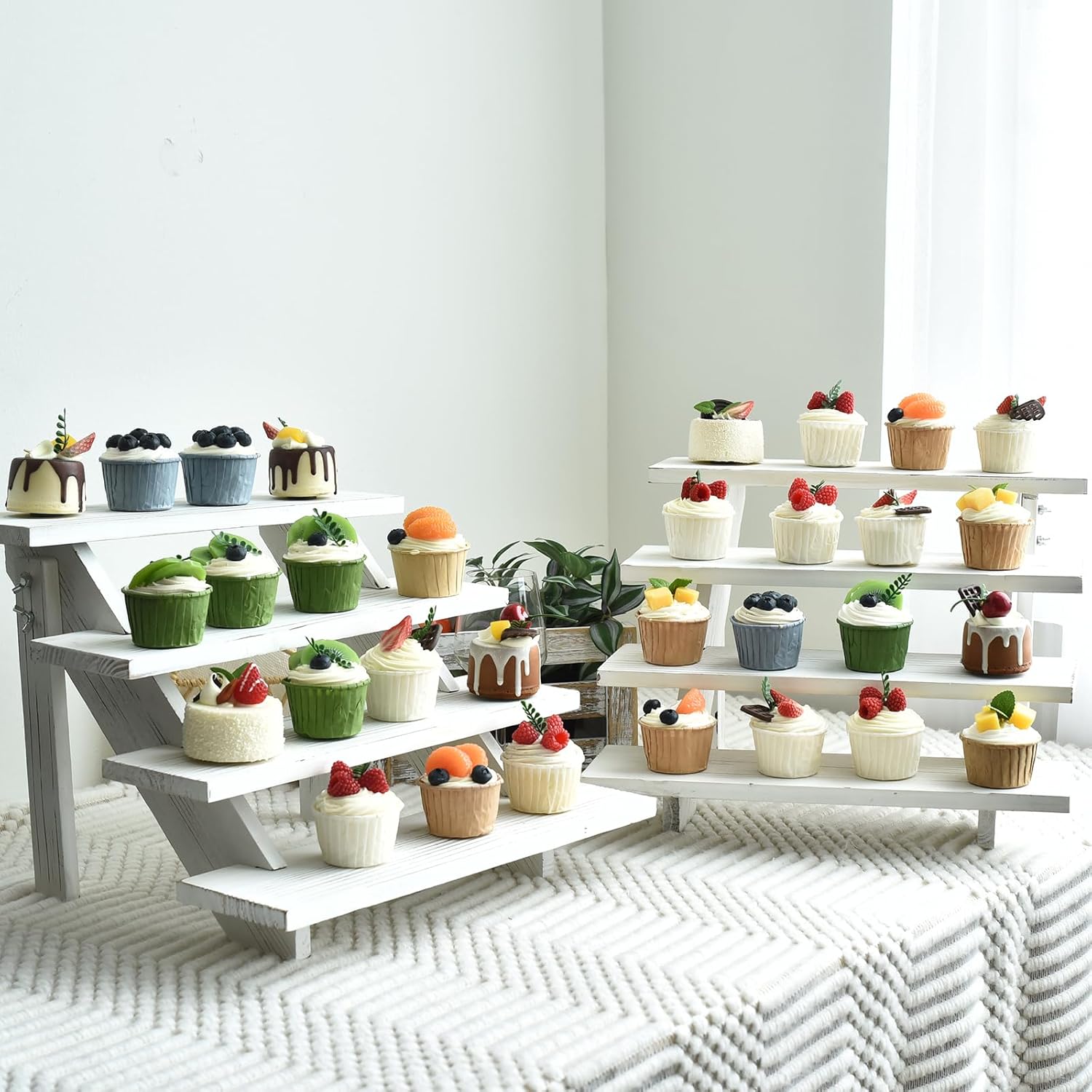 - Ample Space for Cupcakes: These 2pcs 4-tier stand provides ample space to showcase your delicious treats. Each stand can hold up to 24 cupcakes, ensuring you can present a total of 48 cupcakes with a variety of flavors and designs to impress your guests