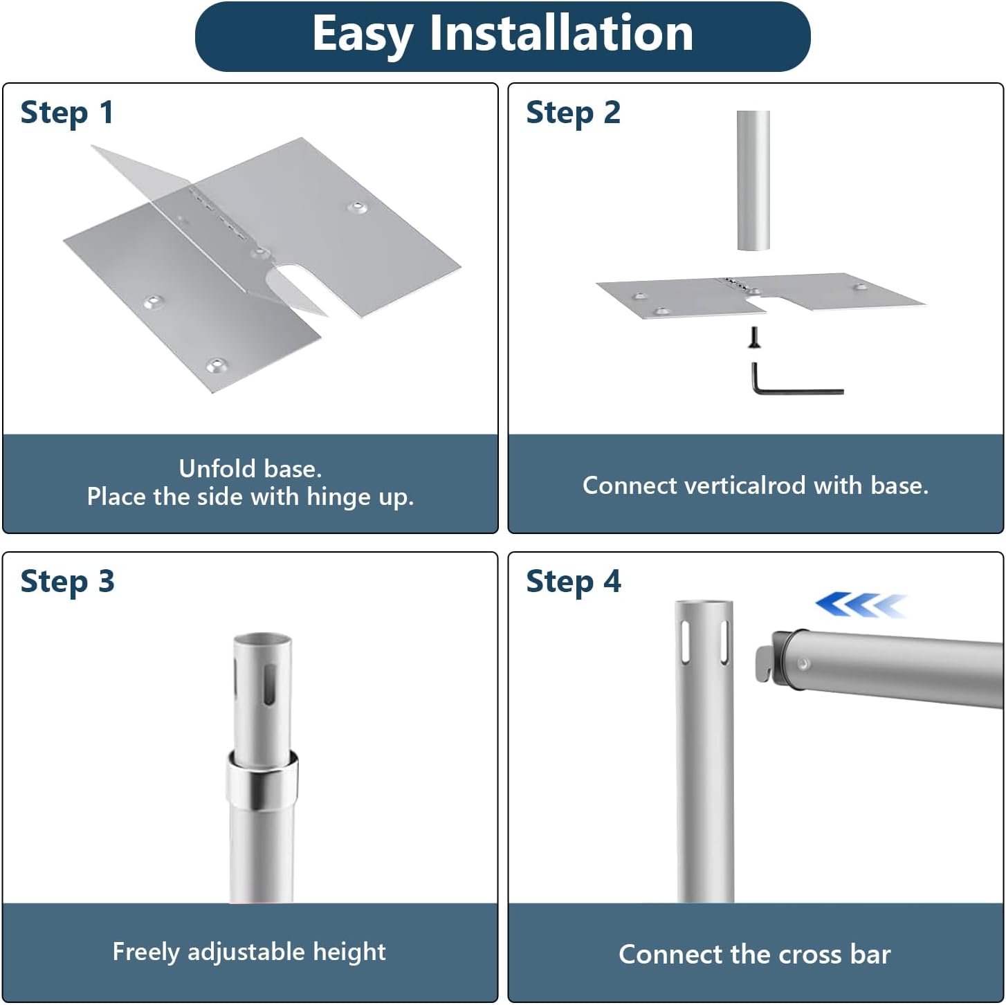 - [2 x Support uprights] Made of 100% Aluminum Material. The diameter is 1.48 inches, Stable and No Wobbly even though outdoor use. The Support uprights Max Height Range is 8.6ft / 260cm, with safety rotary height adjustment.