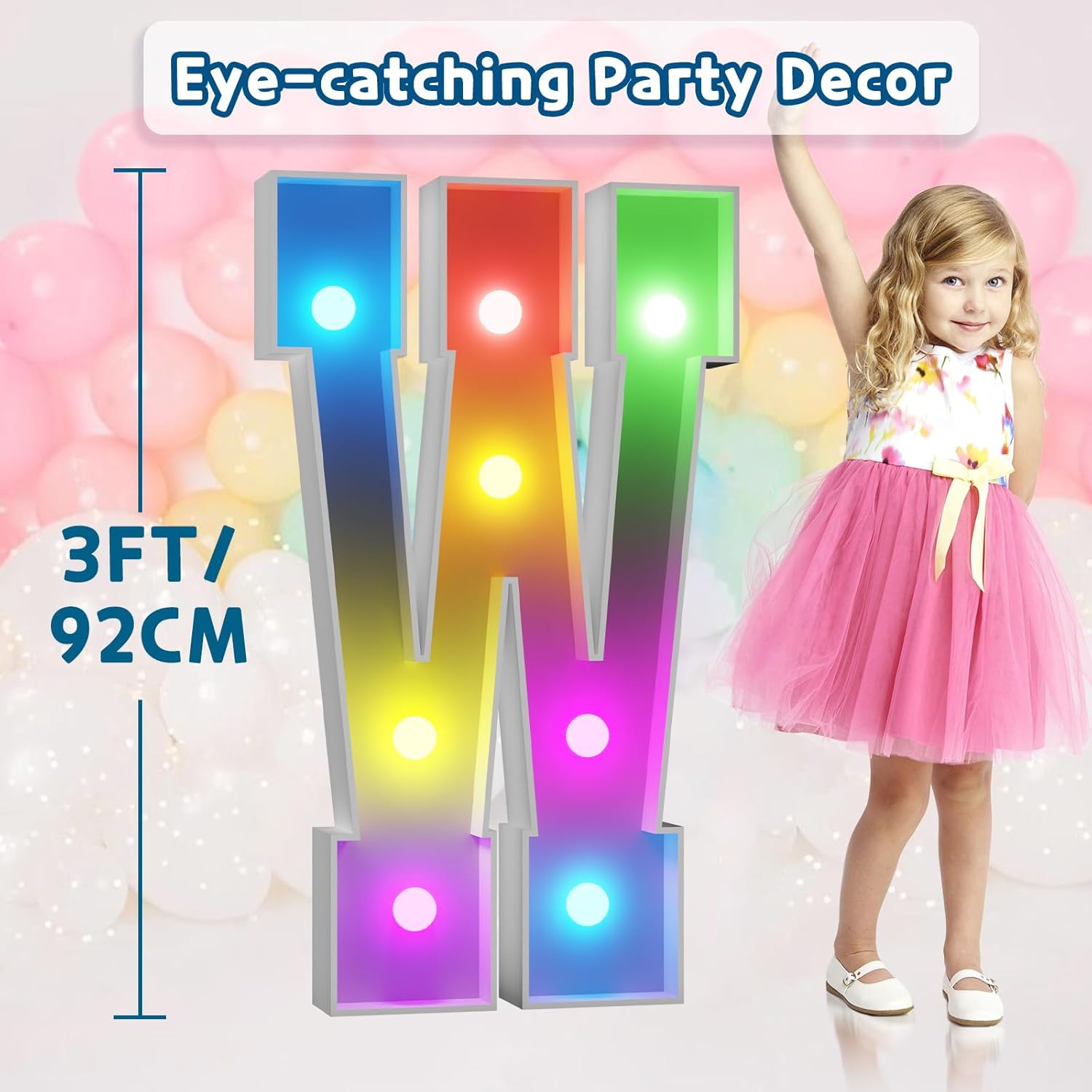 Imprsv 3FT Colorful Marquee Light Up Letters W, 18 Color Light Up Alphabet Sign with Remote, Baby Shower, Birthday Engagement Wedding Party Decor