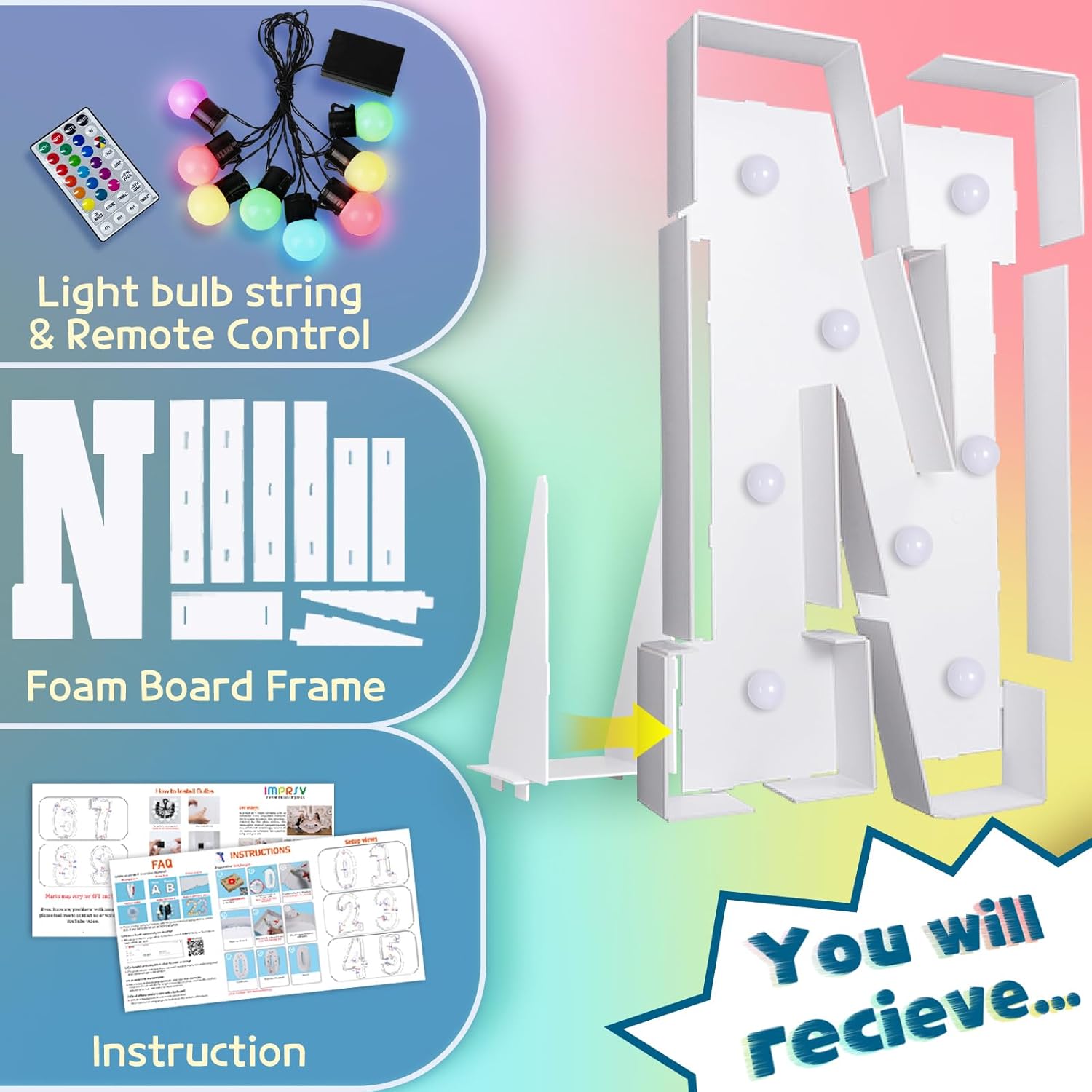 imprsv 3FT Colorful Marquee Light Up Letters N & Alphabet Sign with Remote, Baby & Large Letters for Baby Shower, Birthday, Engagement, Wedding Party Decor