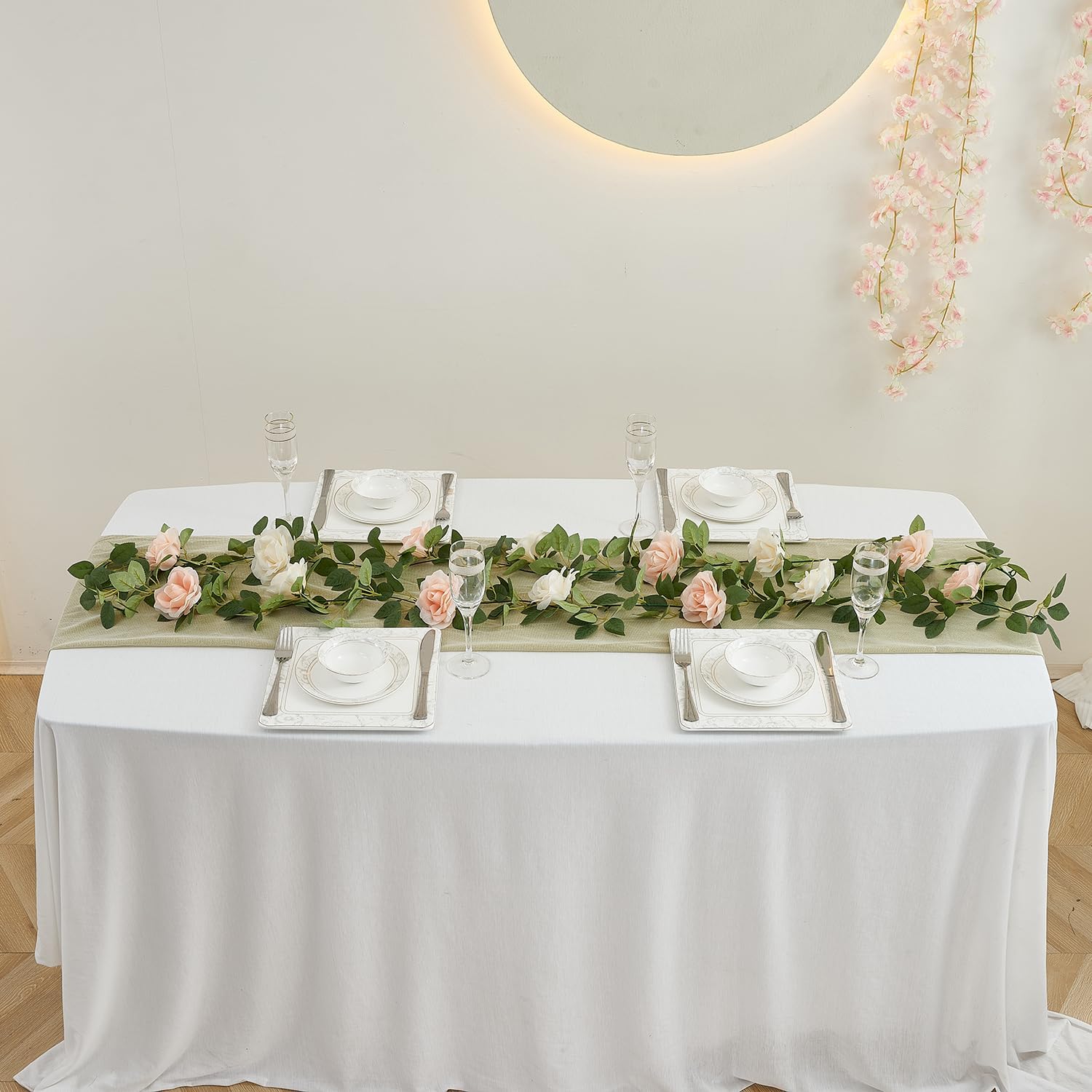 - 【VERSATILE AND BEAUTIFUL】You can hang it on the wall, door, swing, mirror, etc. Anything you like to enjoy with artificial leaf vines. Or perfect for wedding parties, wedding arches, centerpiece decorations, show windows, shop, restaurant, office, flower basket, party, celebration, aisle, stairway, fences and many other events.