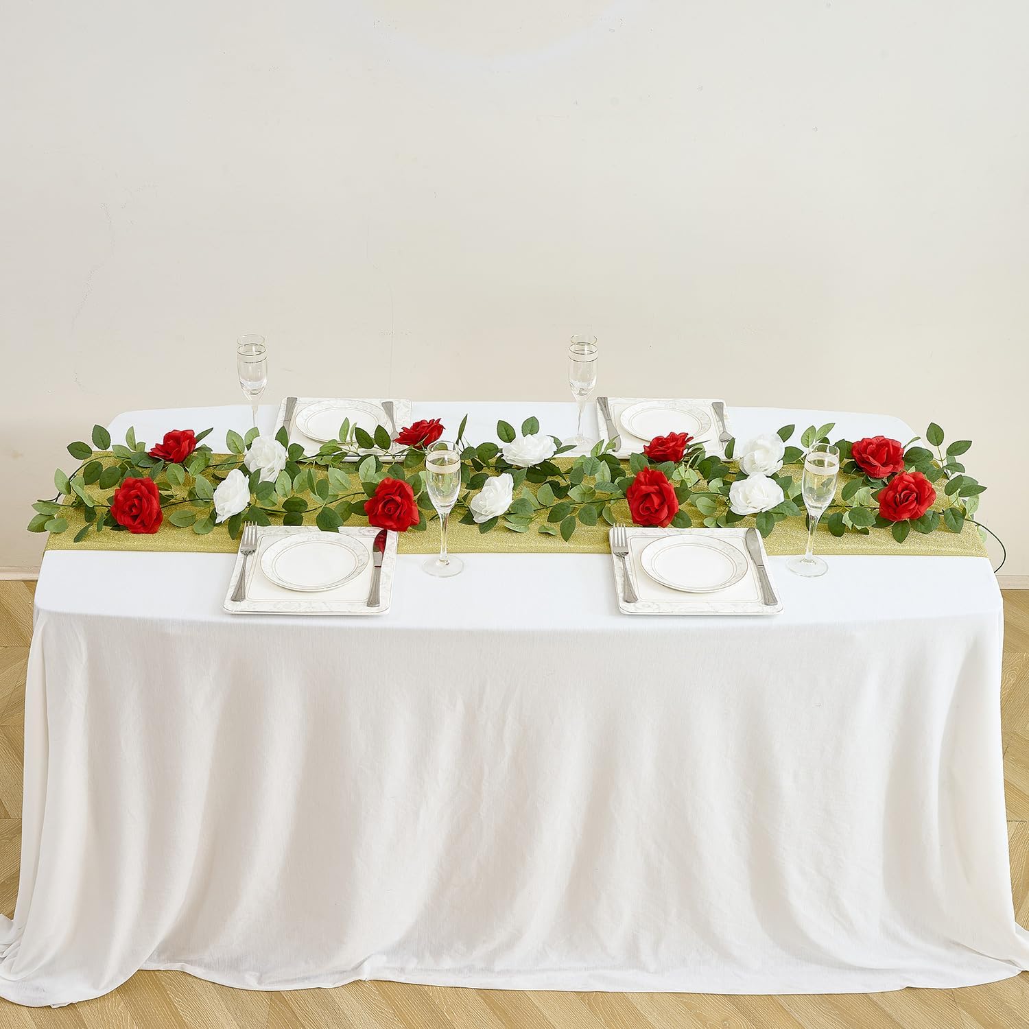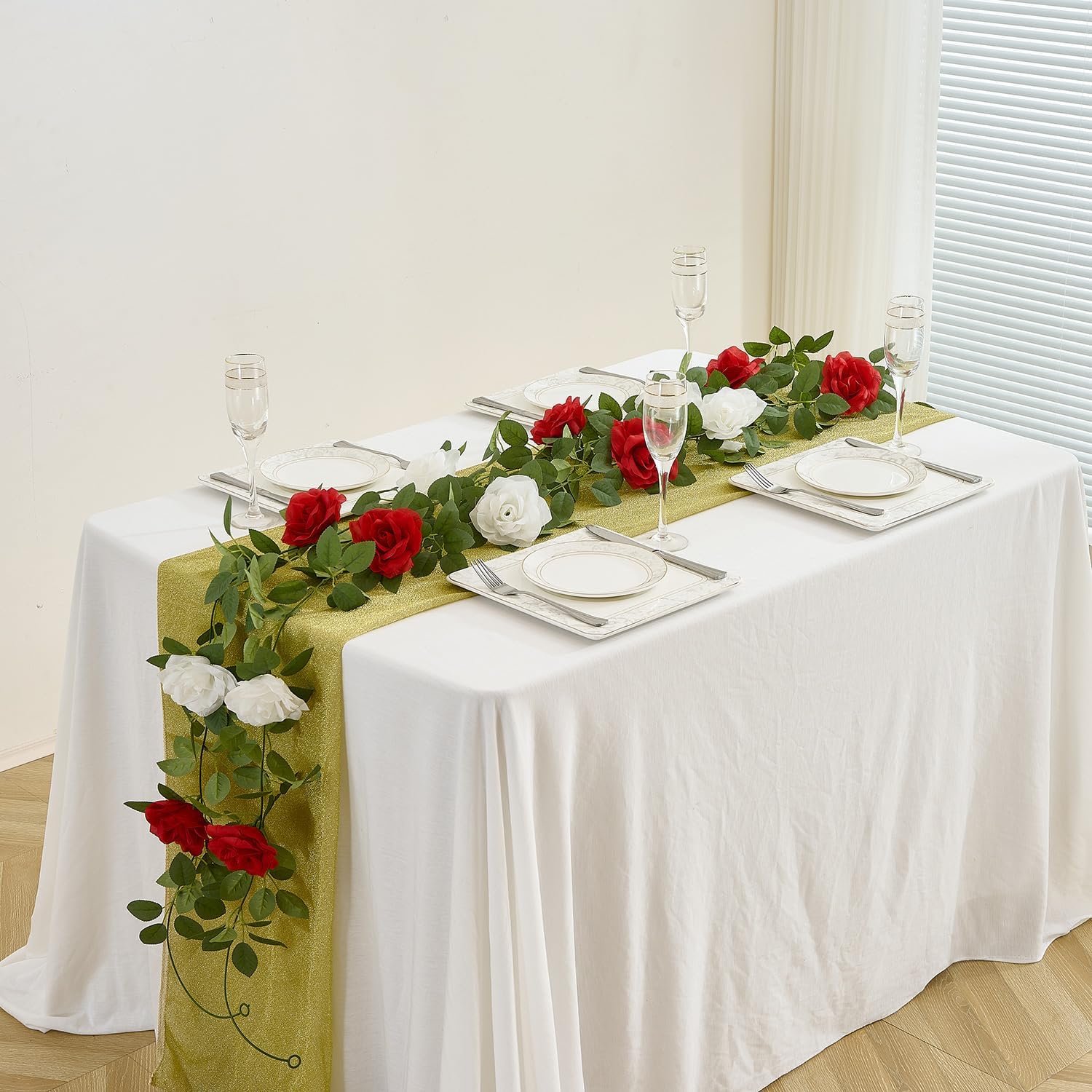 Artificial Rose Garlands Red Rose Vines Leaves Banners Hanging Floral Garland Fake Rose Flower Vine Wall Decorations