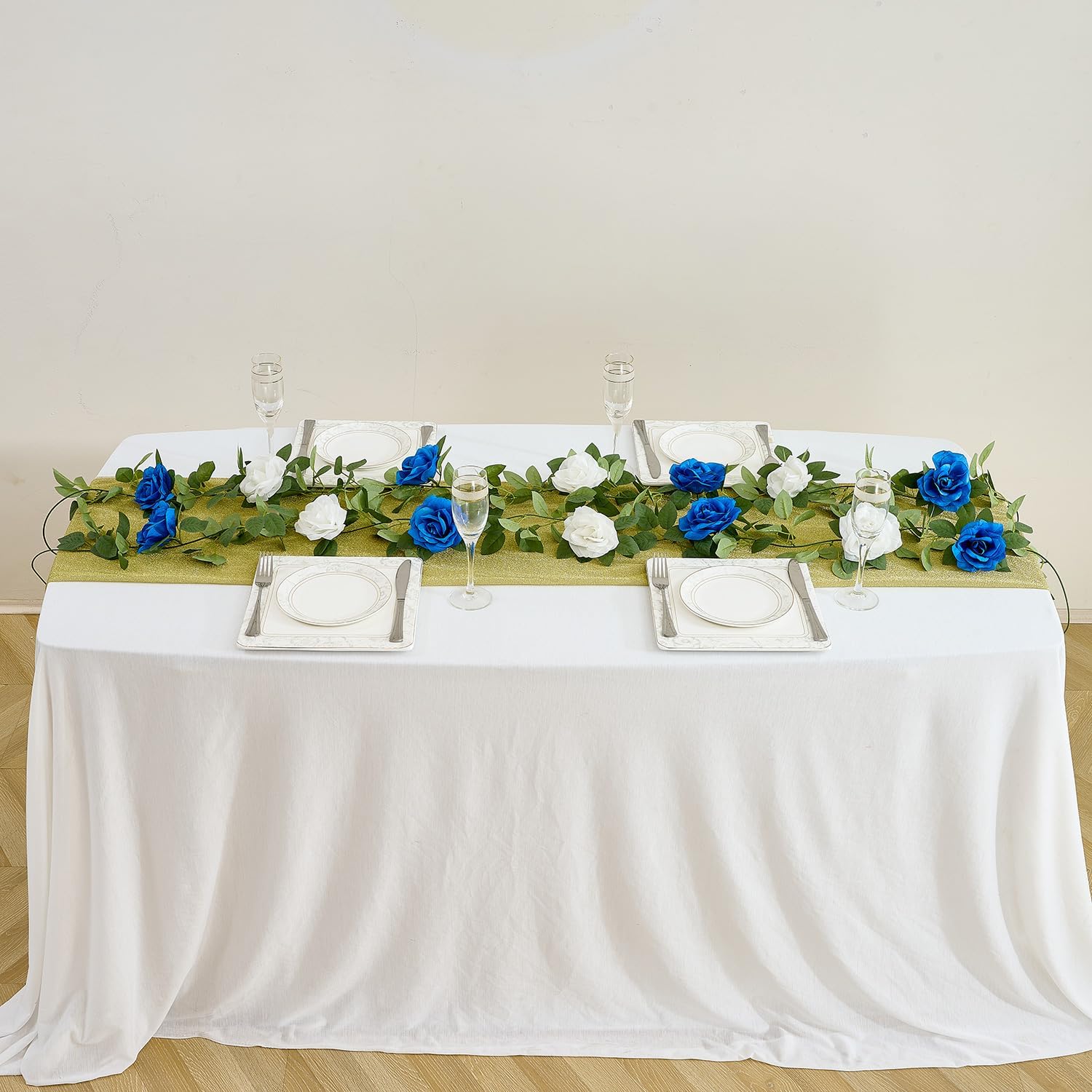 Royal Blue Artificial Rose Garlands Rose Vines Leaves Banners Hanging Floral Garland Fake Rose Flower Vine Wall Decorations