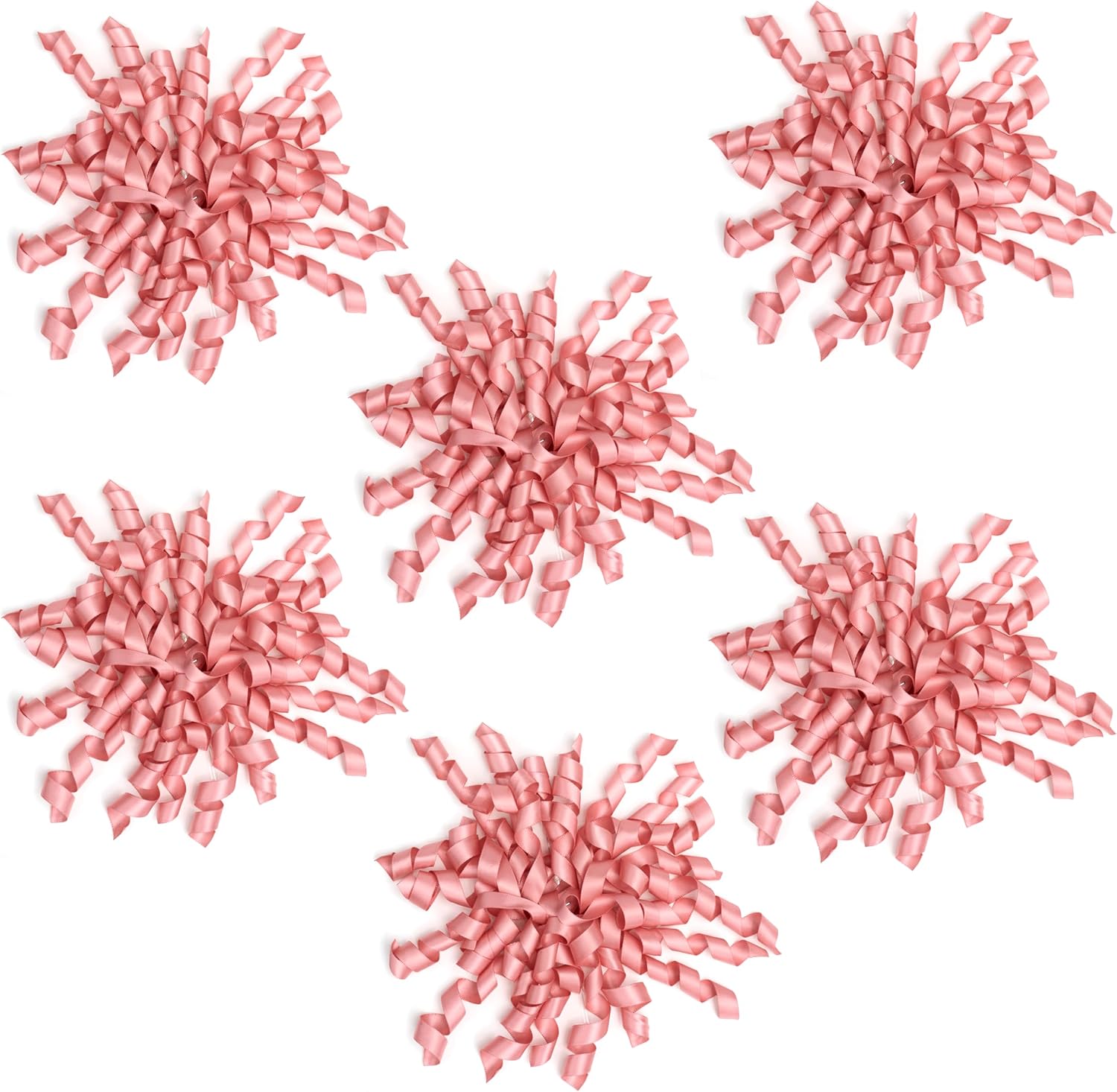 6 Inch Rose Gold Curly Bows for Gift Wrapping Set of 6, Self Adhesive Bows Blush Pink Gift Bows for Presents, Satin Ribbon Bows for Birthday, Wedding, Christmas, Bridal Shower