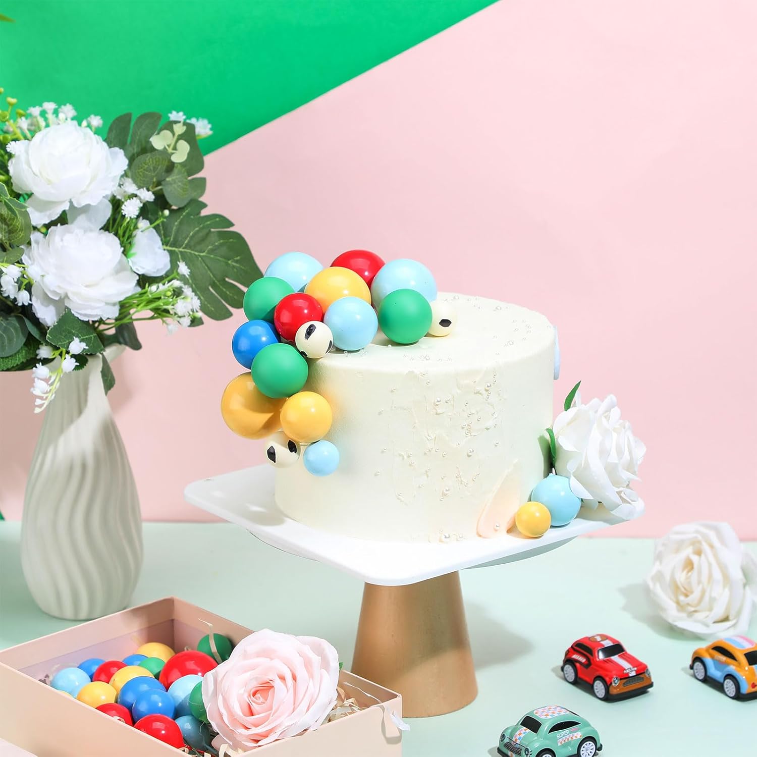 - Total Quantity: Note: not edible,you will get 108 pieces cake balls decorations, which are very bright and can be applied with other decorations to make your cake more beautiful; Sufficient quantity can not only meet your needs, but also can be given as gifts to others