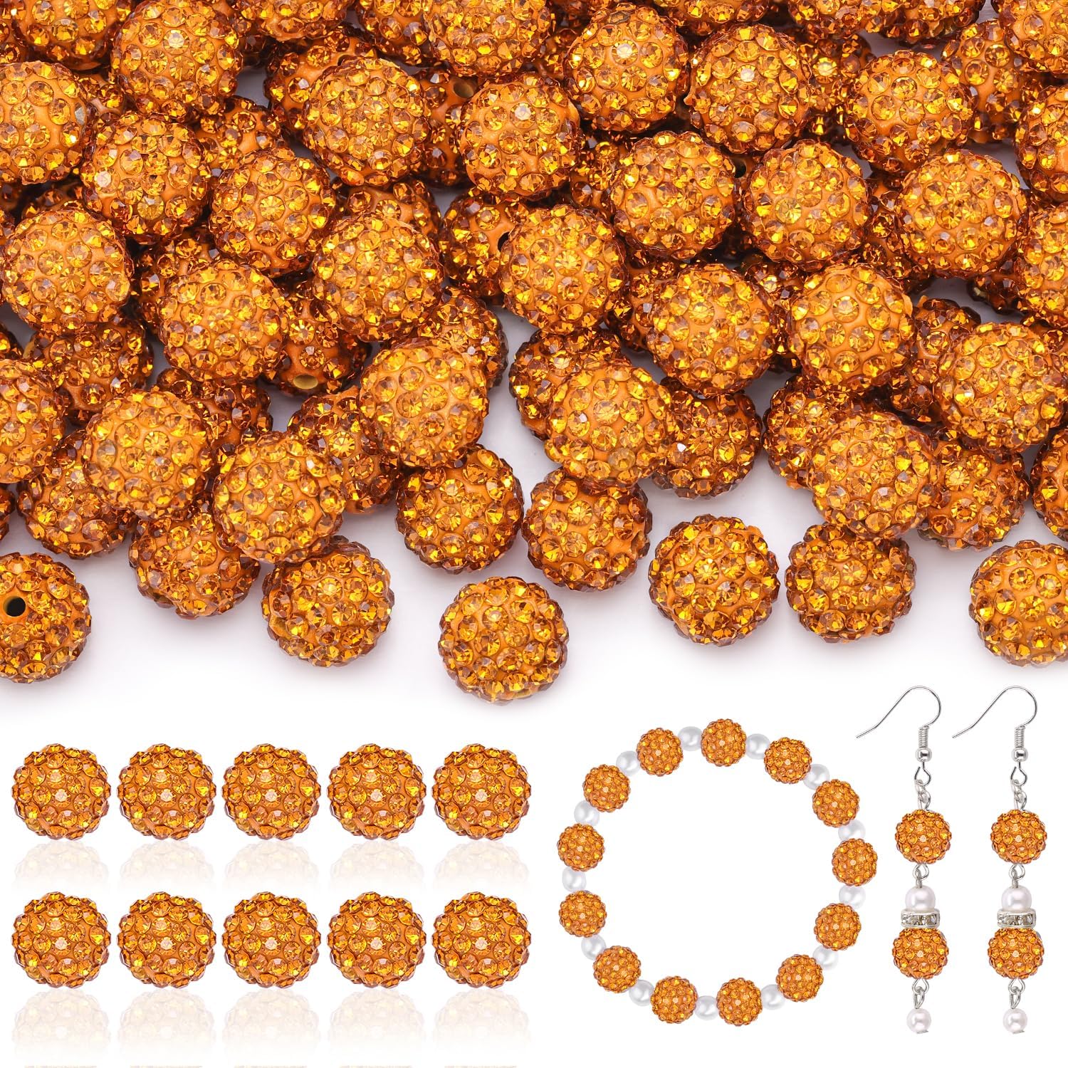 - BLING EFFECT -- Our rhinestone beads are made of polymer clay, embedded with superior quality glass rhinestones. We do quality control management to ensure the high quality of the bling beads. Rhinestones cover the entire surface and are not easy to fall off, shining like a diamond. With great light reflecting effect, the gems add glitz to the beads and make them charming and eye-catching. Wearing ornaments made from these beads, you will be the center of attention.