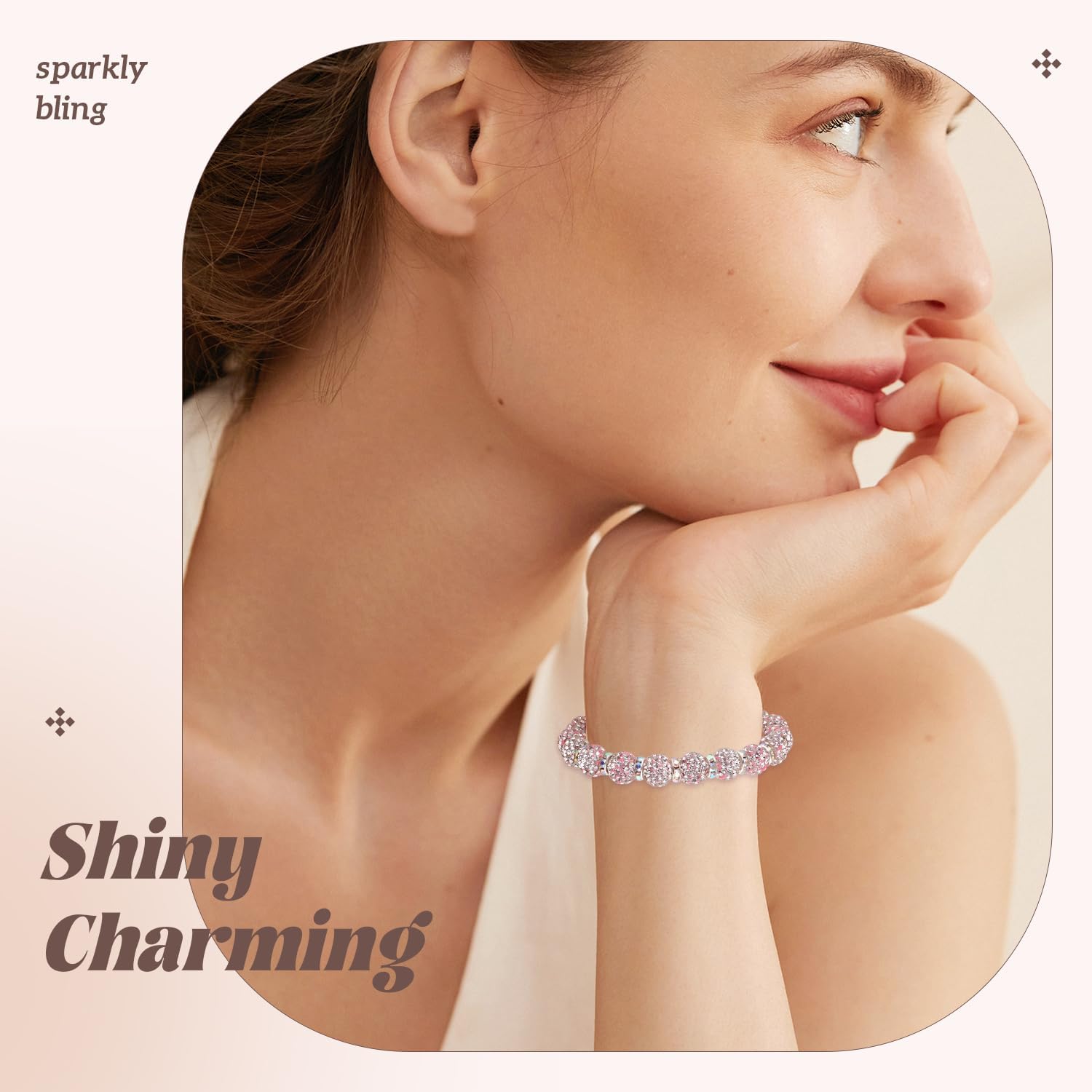 160pcs 10mm Rhinestone Beads for Jewelry Making, Pink White Shiny Round Disco Ball Beads Bulk, Sparkle Crystal Clay Christmas for Bracelet Baseball Necklace Earring Crafting and DIY