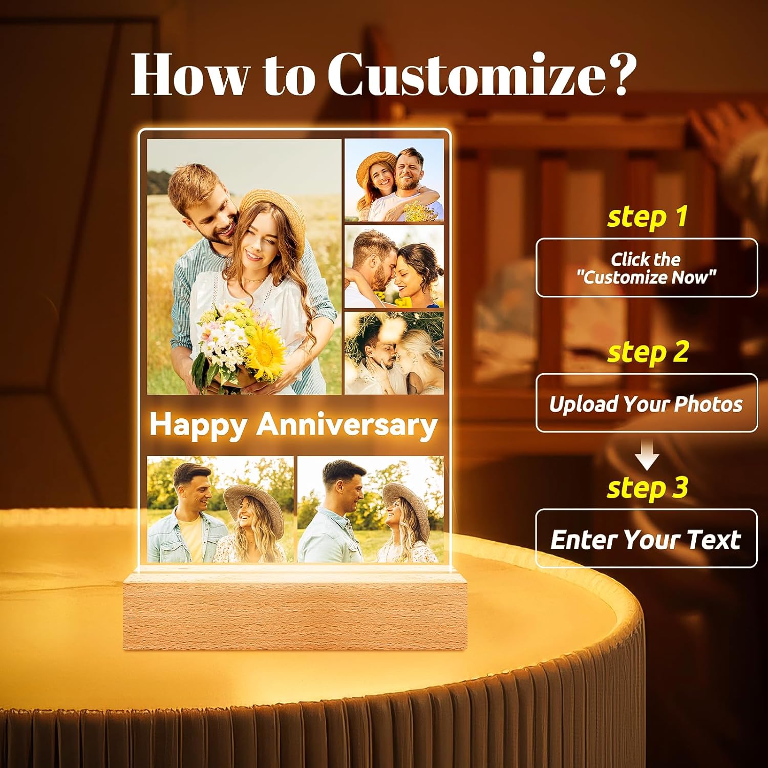 Custom Picture Frames with Photos, Personalized Photo Frame with Night Light, Customized Gifts for Couples, Personalized Anniversary Birthday Gifts for Women Men Her Him Boyfriend Girlfriend