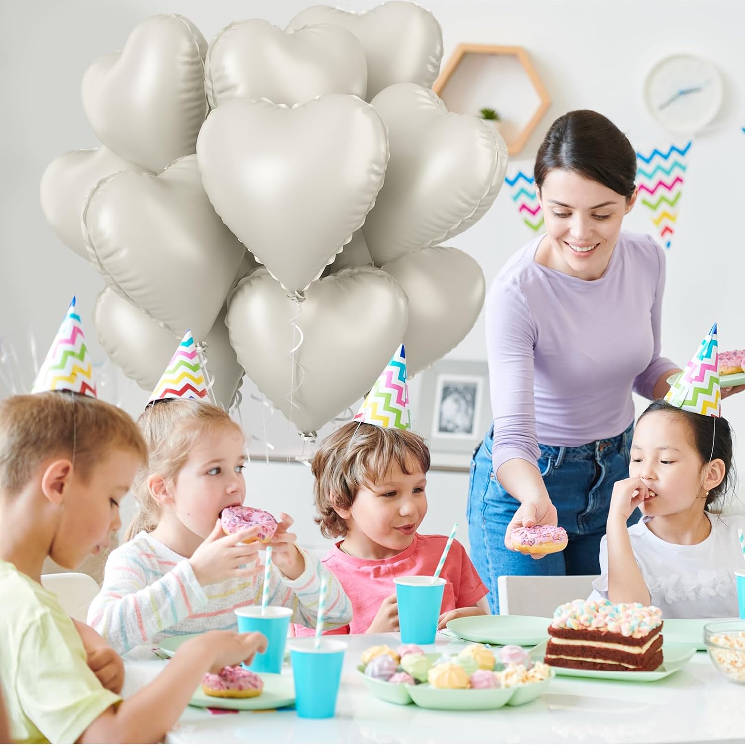 - Cream Heart Balloons: There are 12pcs 18 inch cream heart foil balloons and 1pc ribbons.