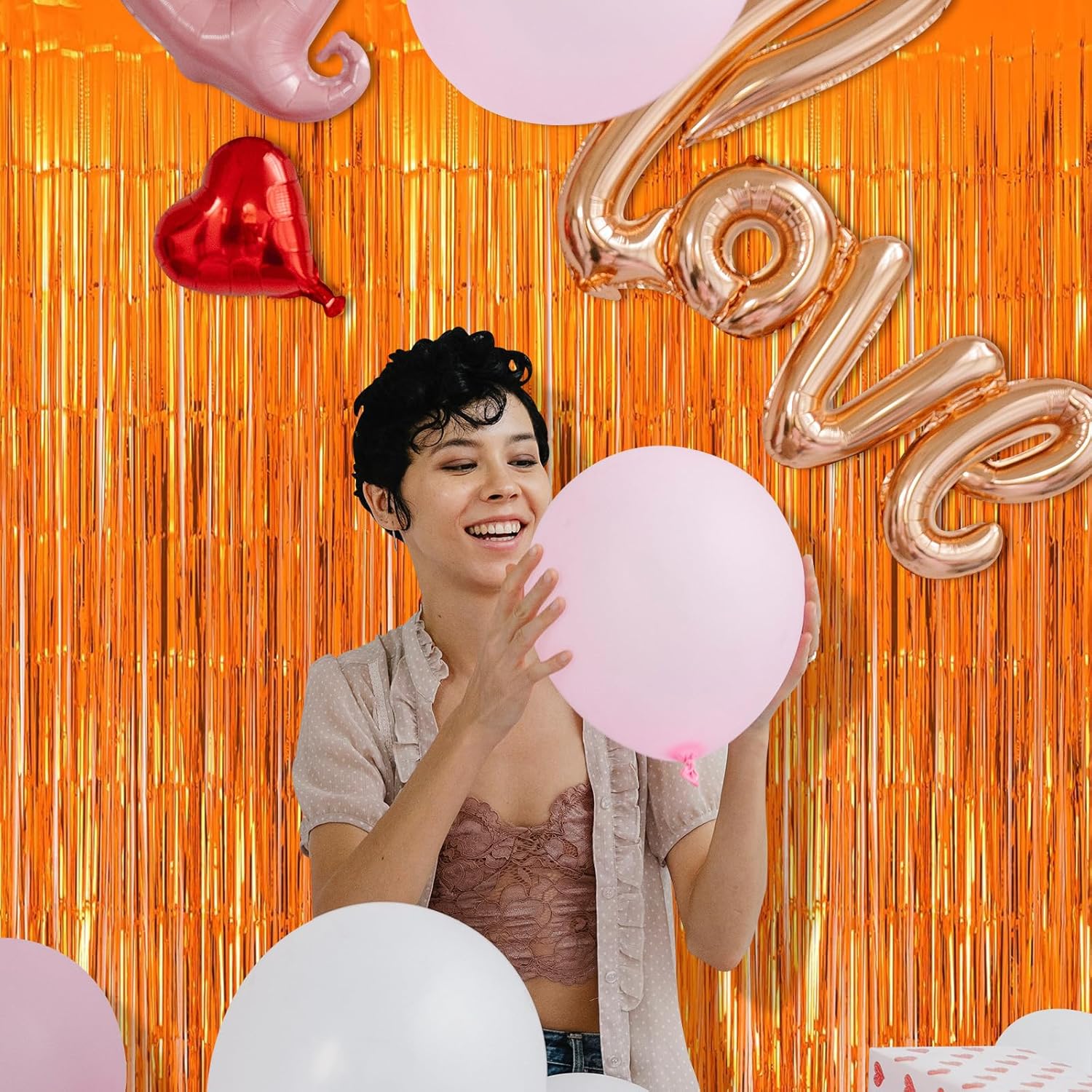 5 Pack Orange Fringe Backdrop 3.2ft x 8.2ft Foil Curtain Tinsel Foil Fringe Curtains Backdrop Tinsel Backdrop Streamers for Birthday Party Decoration Wedding Halloween Christmas Decoration (Orange)