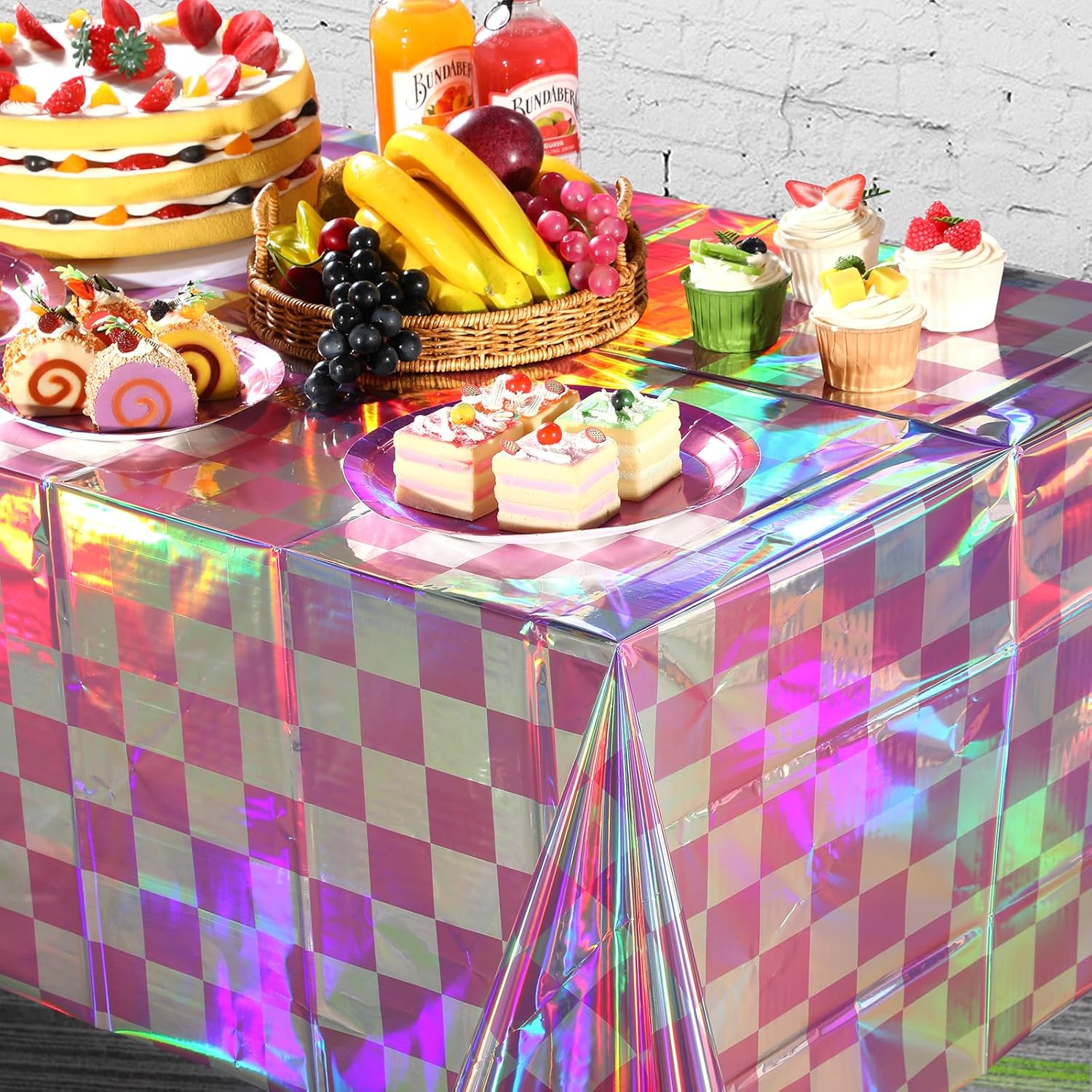 - Package Includes: You will receive 6 pink and iridescent checkered plastic tablecloths. Each iridescent pink table cover measures approx 54 x 108 inches, fits any rectangular table up to 8 feet in length, suitable for party decoration.