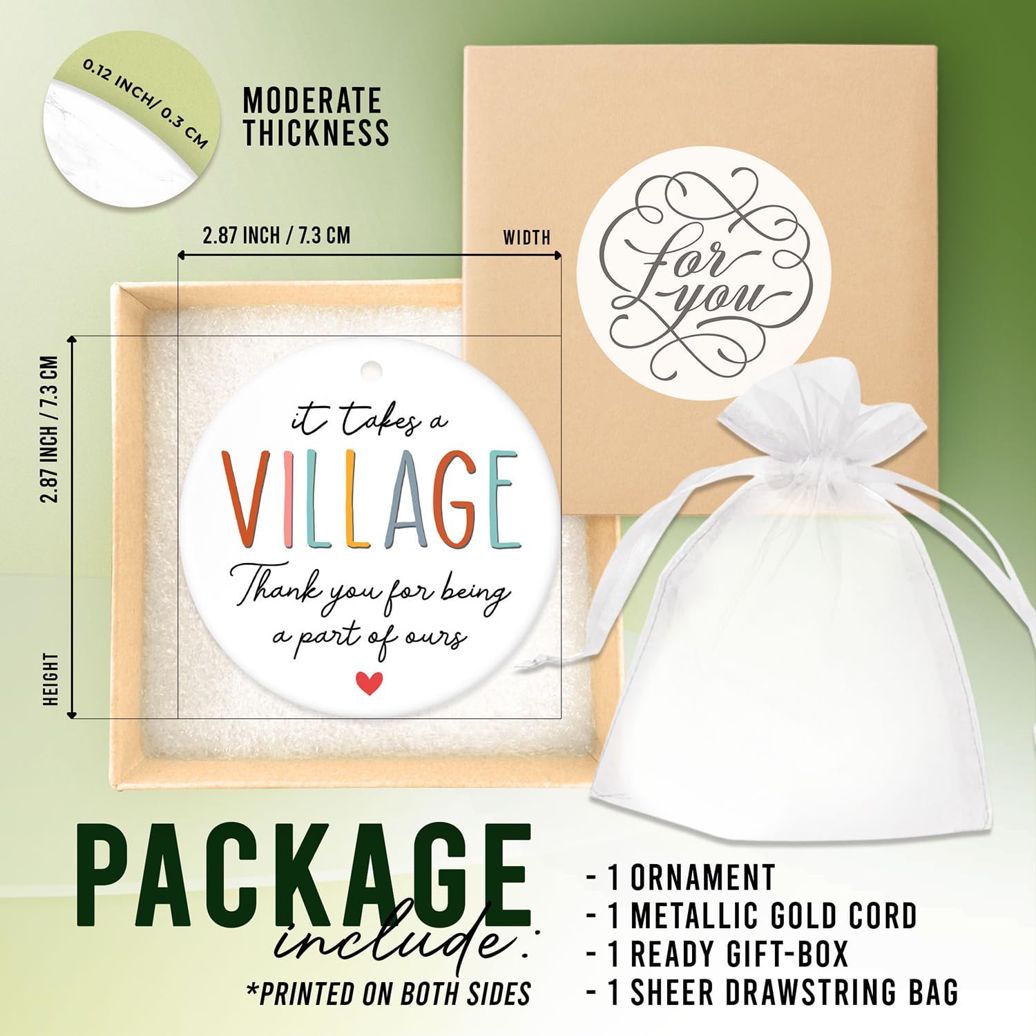 HEXMOZ Thank You Gifts for Women & Men - Teacher Gifts for Women - Appreciation Gift for Teacher, Nurse, Coworker, Employee, Daycare Provider, Nanny, Babysitter – It Takes a Village Christmas Ornament