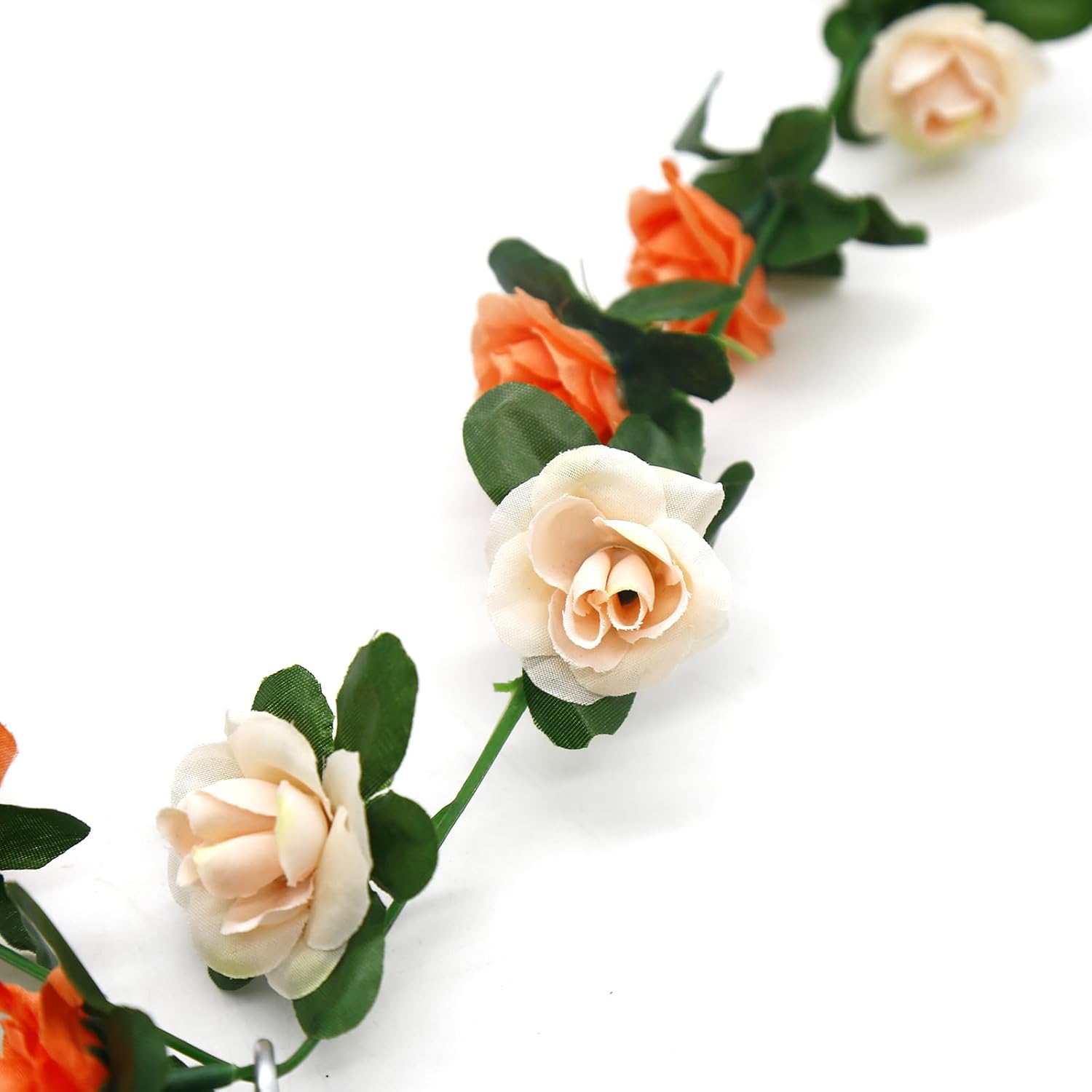 - Material: Rose floral garland is handmade from silk and plastic. The vine is soft and brightly colored, and can be bent, cut, and hung as needed