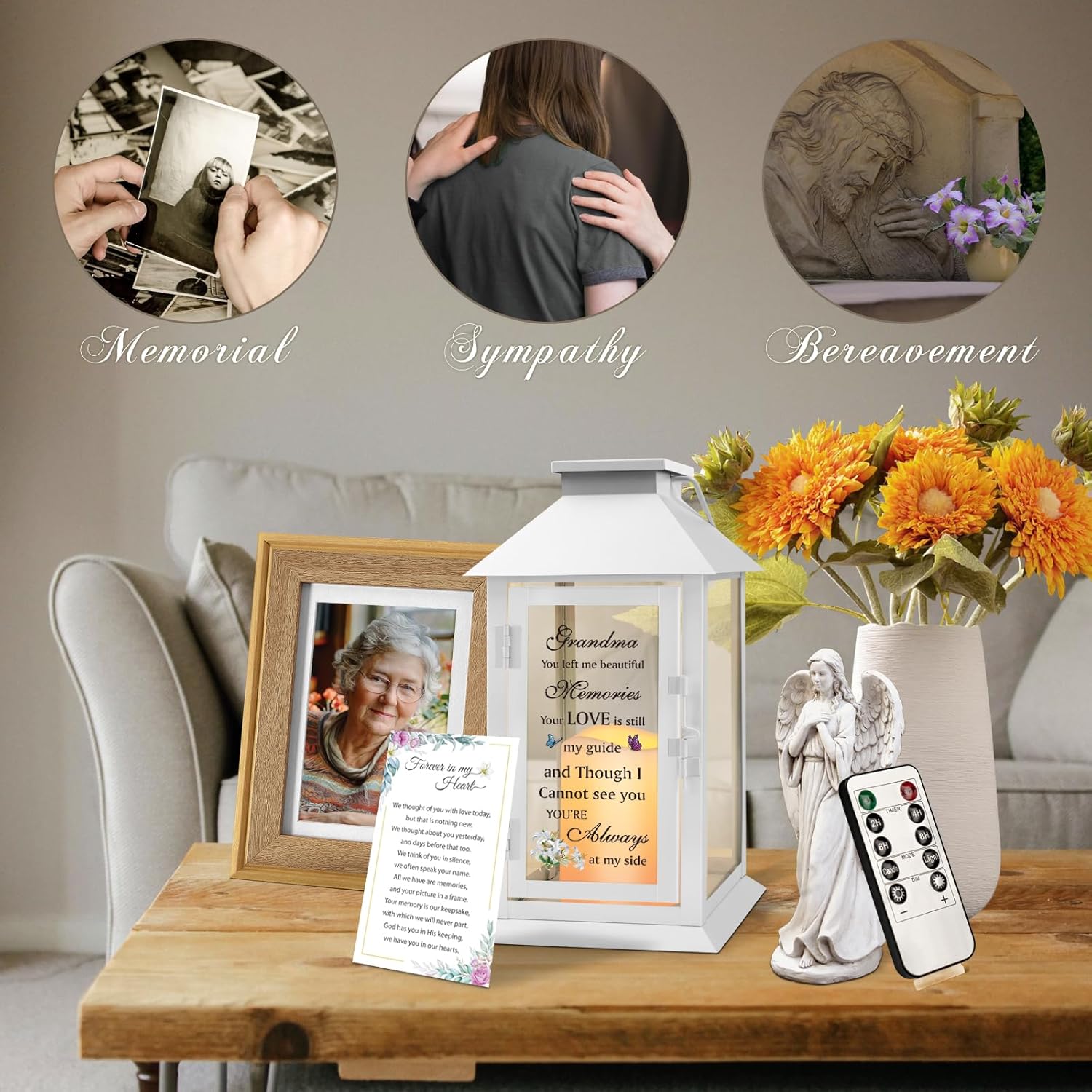 - Sympathy Gift for Loss of Grandma: Memorial lanterns are custom memorial gifts for loss loved ones that offer hope, comfort and help to a grieving friend or family member. Flickering flameless candle lights surround us like those we love never leave. Longer lasting than other gifts like flowers, place sympathy lanterns around home to remind you of precious memories. The butterfly pattern on the glass makes us feel that our loved ones are close by.