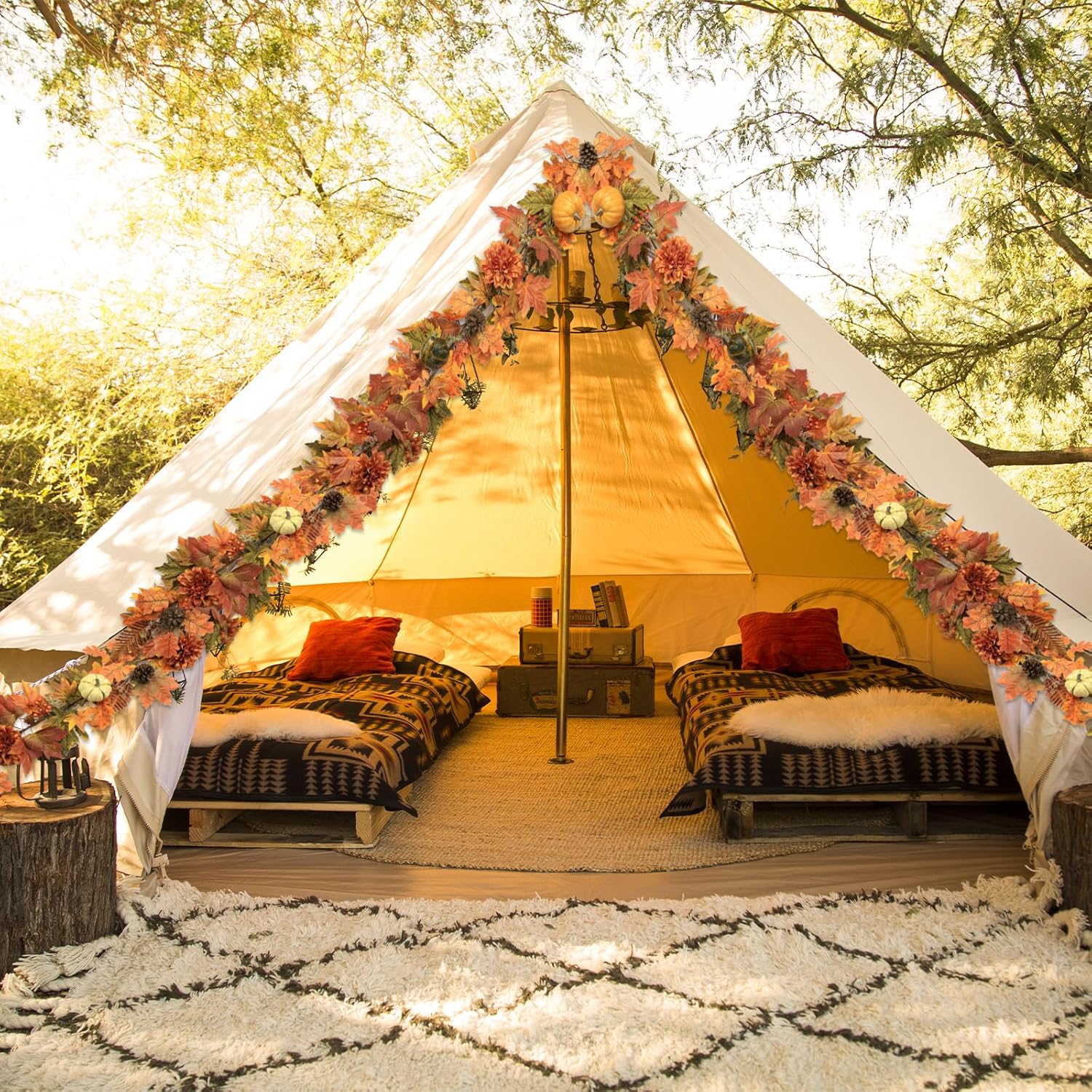 - 【High - Quality Materials】The maple leaves are made of durable and vivid plastic and silk cloth, while the garland stems are made of flexible wire. This makes the outdoor fall garland sturdy, bendable, reusable, and long - lasting