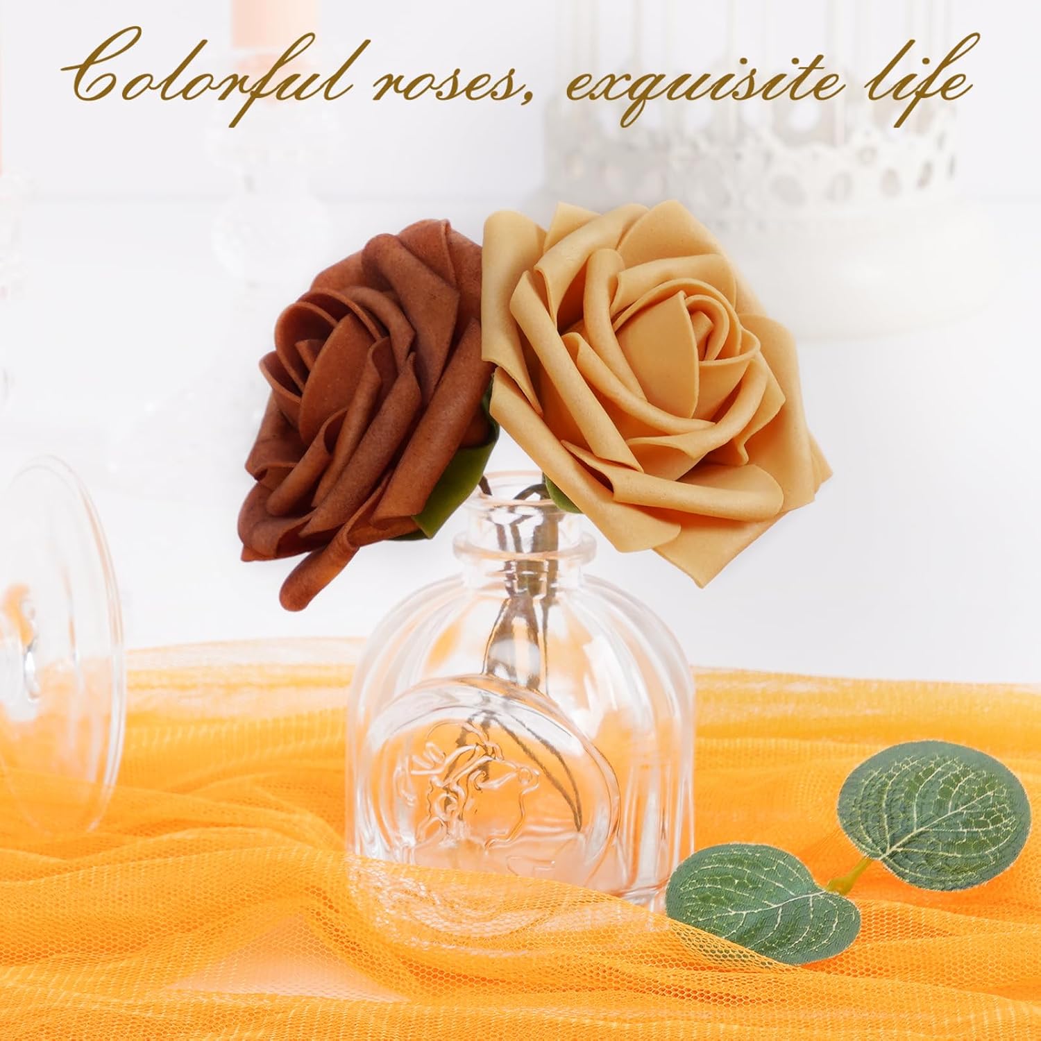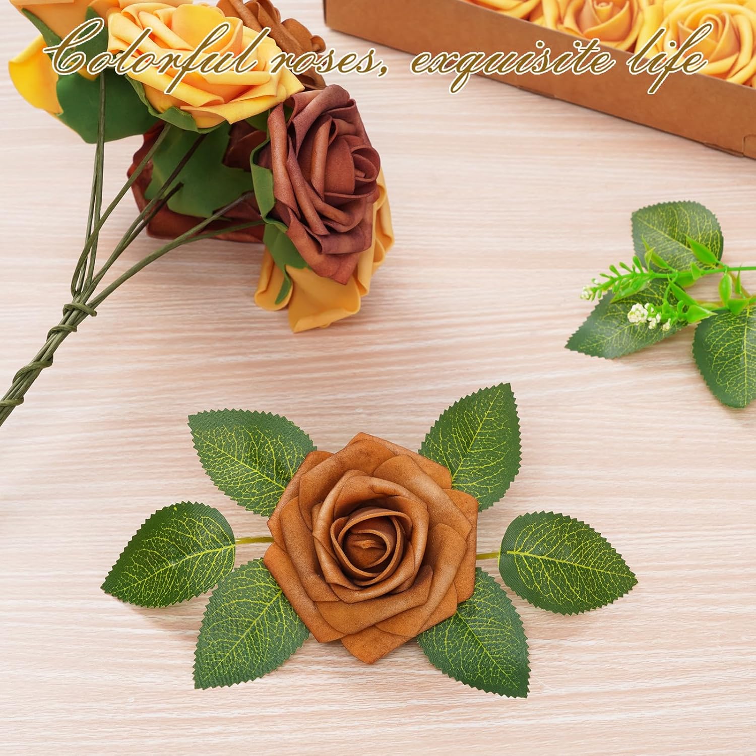 - Kindle Your Creative Flames: The box includes 36 gradient burnt orange roses (3" flower head, 8" stem) and 8 green rose leaves, perfect for an array of DIY crafts. Whether creating wedding bouquets, graduation or birthday party ornaments, baby shower decorations, or cake adornments, our faux roses add a touch of class to every important moment.