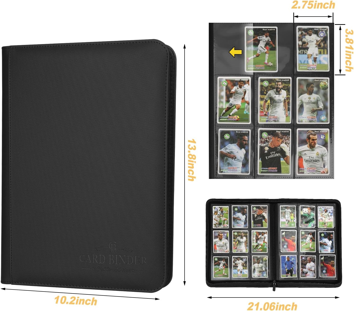 - 【Design Advanced】9-Pocket Trading Card Binder with black middle material gives cards a classic framed look and enhances the art on each cards.And compatible with all standard card sleeves.