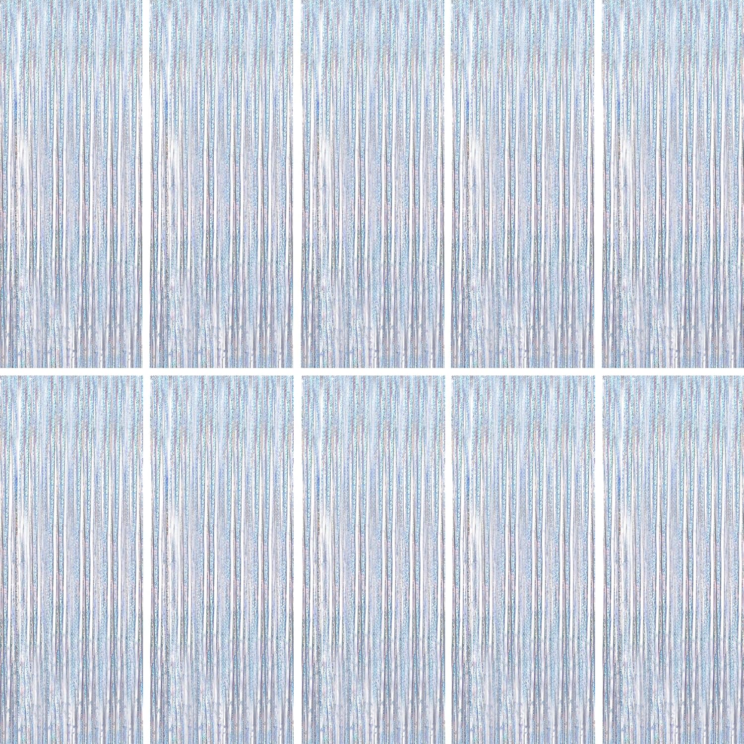 - Package includes:10 pack Laser Silver foil fringe curtains with exquisite packaging.