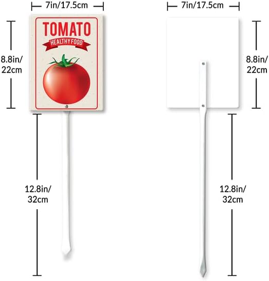 - [Extra large size] The plant tags total height 21.6", Width 7“ , Thickness is 0.07". The extra large size of the label makes the graphics are easy to read and attractive. Ther are thick, tall, and sturdy, and go into the ground easily