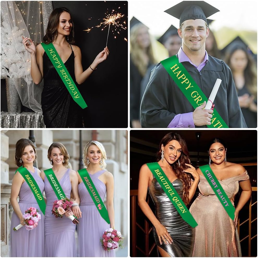 - 【Party Sash】 Suitable for birthdays, weddings, graduations, beauty pageants, bachelorette parties, homecomings, Christmas, Halloween, Mardi Gras, party for any occasion and will make you feel like a true VIP. girl scout sash green green satin fabric green girl scout sash with patches green sash with patches girl scout sash girl scout costume girl scout sash with badges boy scout sash pageant sash birthday sash for women blank sash senior sash girl scout sash halloween girl scout uniform