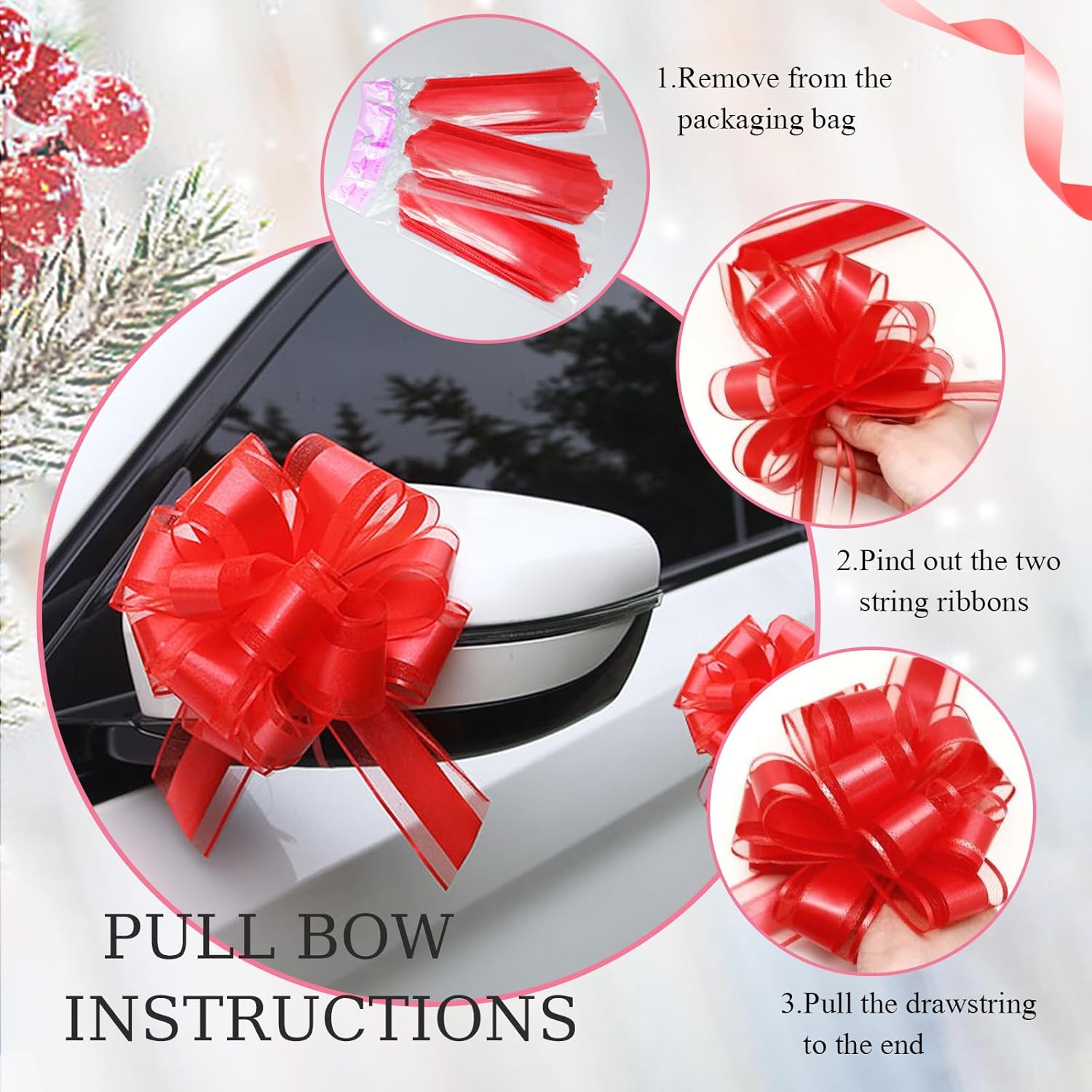 6 Pieces Large Pull Bows,6 inches,Bow for Gift Wrapping,Pull Bows for Party Birthday Gift Wedding Baskets Gift Decorations, Flower Decorations (Red)