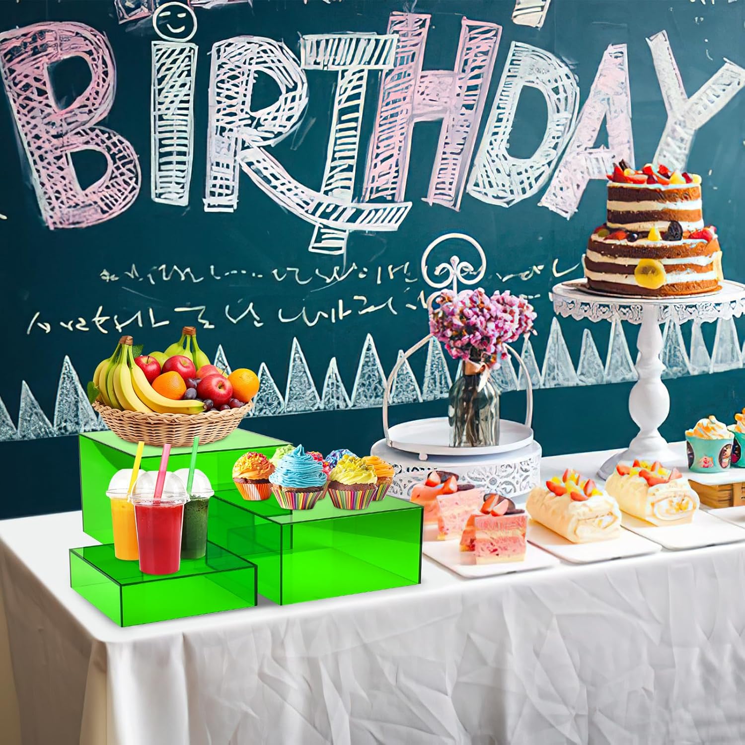Green Buffet Risers 3 Pcs Acrylic Boxes Display Risers for Buffet Table Parties Weddings Catering & Collectibles (6''x7''x8'')