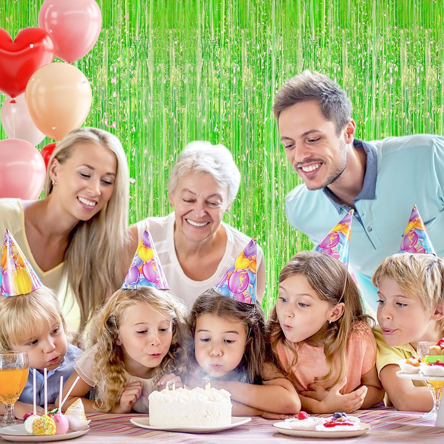2Pack 3.3 x 8.3Ft Neon Green Foil Fringe Backdrop Curtains, Green Tinsel Streamers Birthday Party Decorations Fringe Backdrop for Graduation Baby Shower, Gender Reveal Disco Party Wedding Decorations