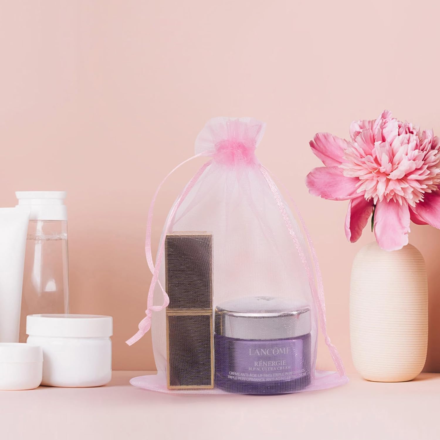 50 Pcs Pink Organza Bags 3x4 Inch, Jewelry Pouch Bags Small Mesh Bag Drawstring Gift Goody Bag for Candy Party Favor Wedding