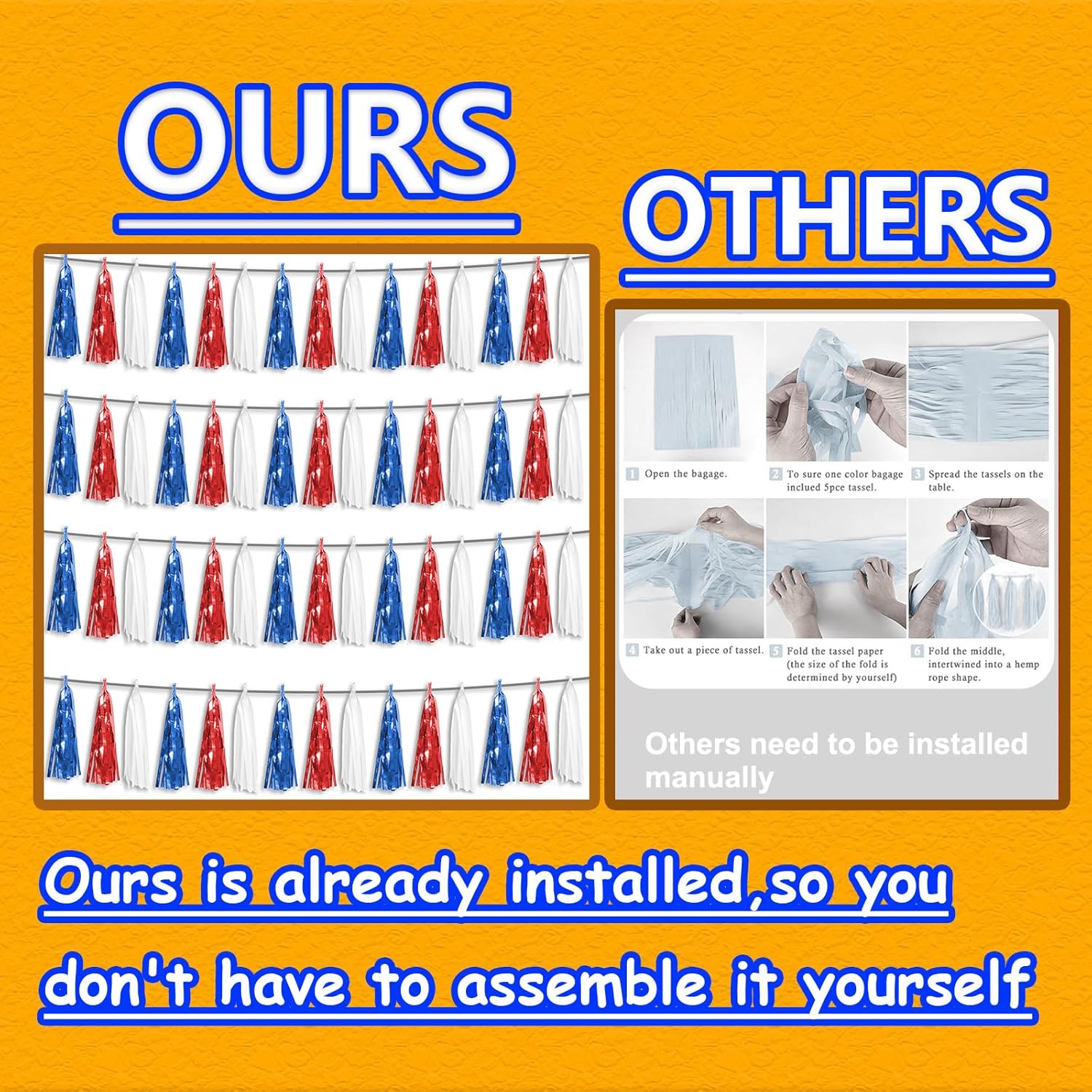 - 【Package Includes】The total length of the white blue red birthday tassels banner is 40 feet, divided into 4 strips, each 10 feet long. Each banner contains 15 tassels, and each tassel measures 14 inches, for birthday decorations many occasions uitable for Patriotic display, Homecoming Float, Christmas Float, ecorative metal trailers, 4th of july floats, graduation floats etc