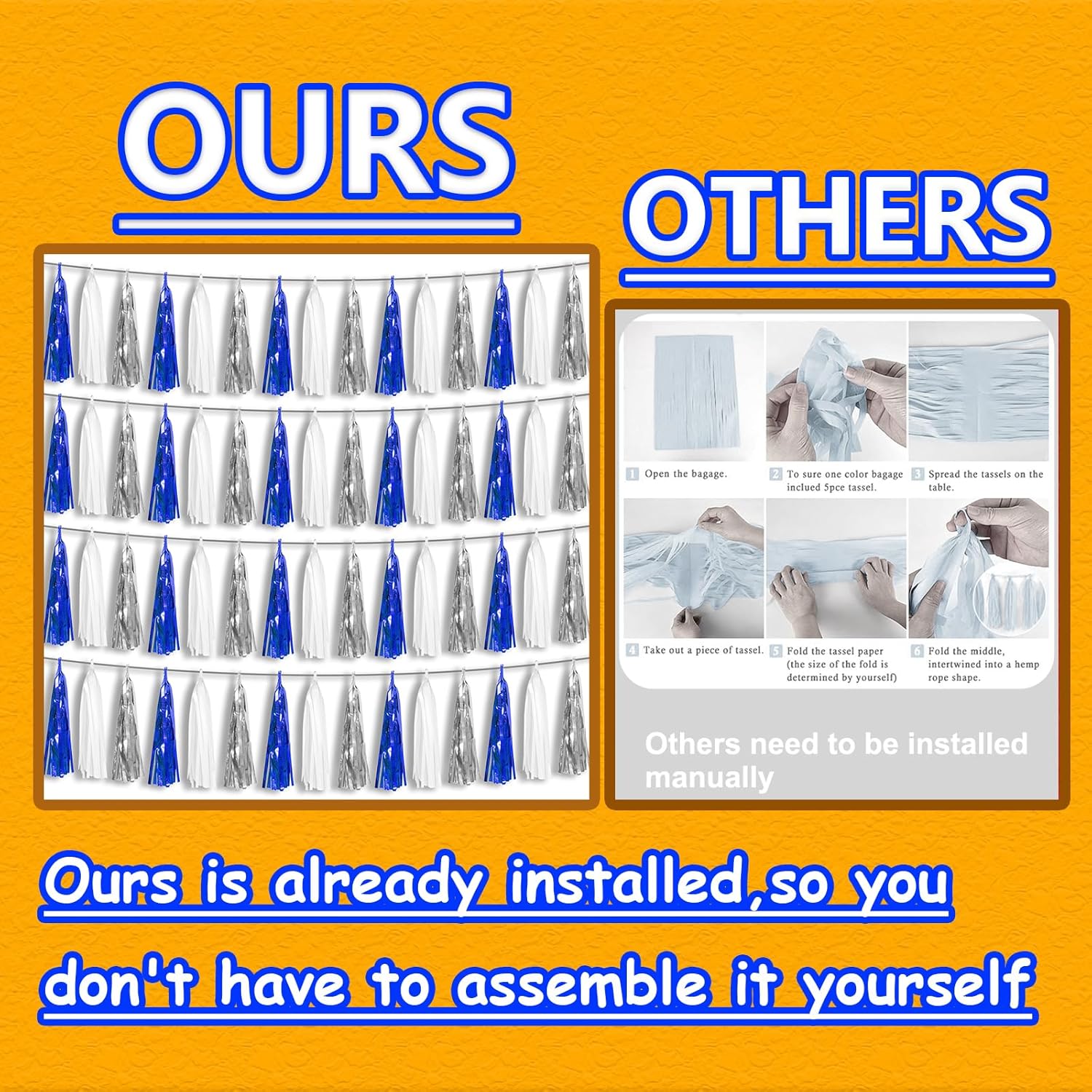 - 【Package Includes】The total length of the navy blue white silver birthday tassels banner is 40 feet, divided into 4 strips, each 10 feet long. Each banner contains 15 tassels, and each tassel measures 14 inches, for birthday decorations many occasions uitable for Patriotic display, Homecoming Float, Christmas Float, ecorative metal trailers, graduation floats etc