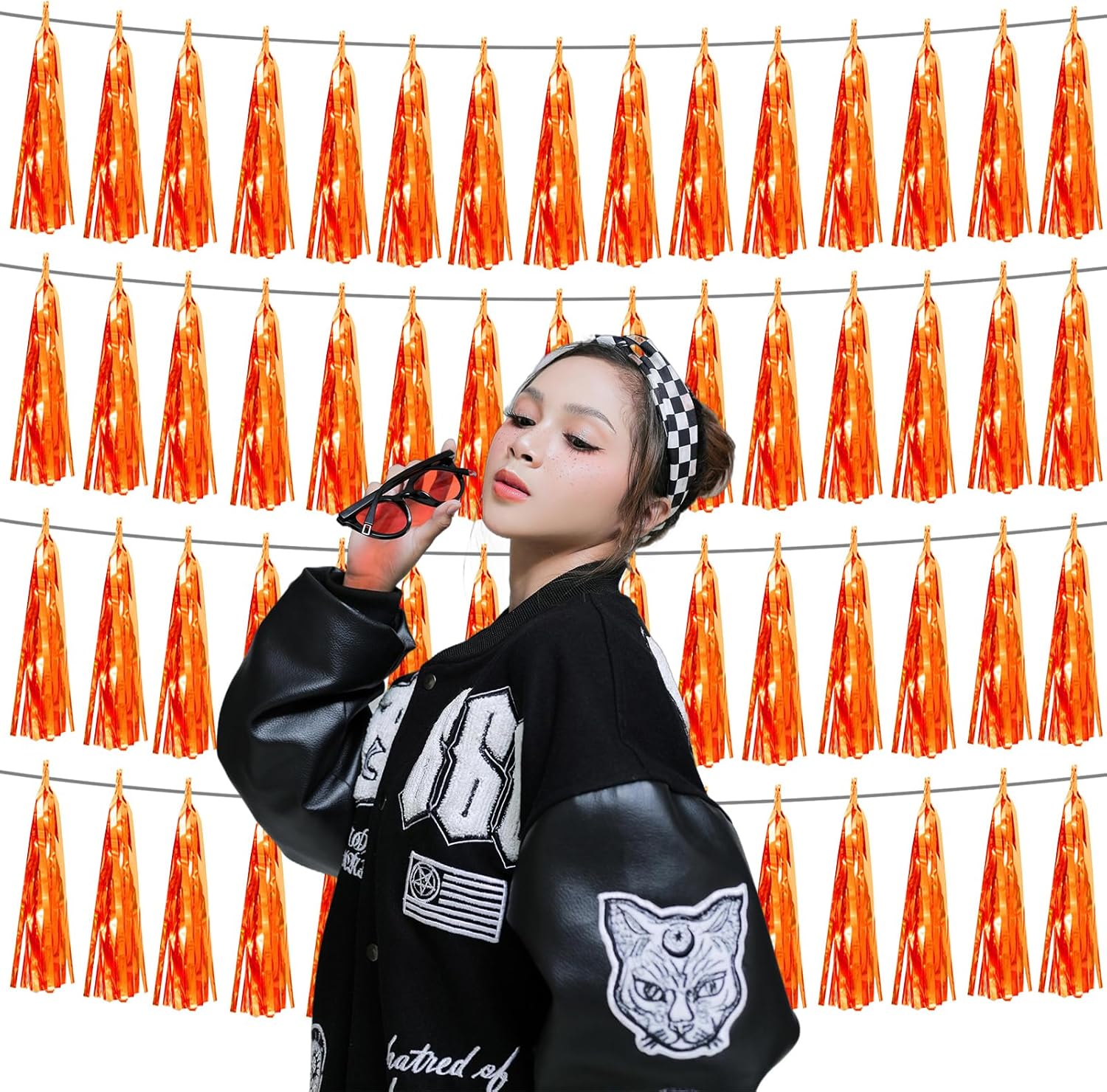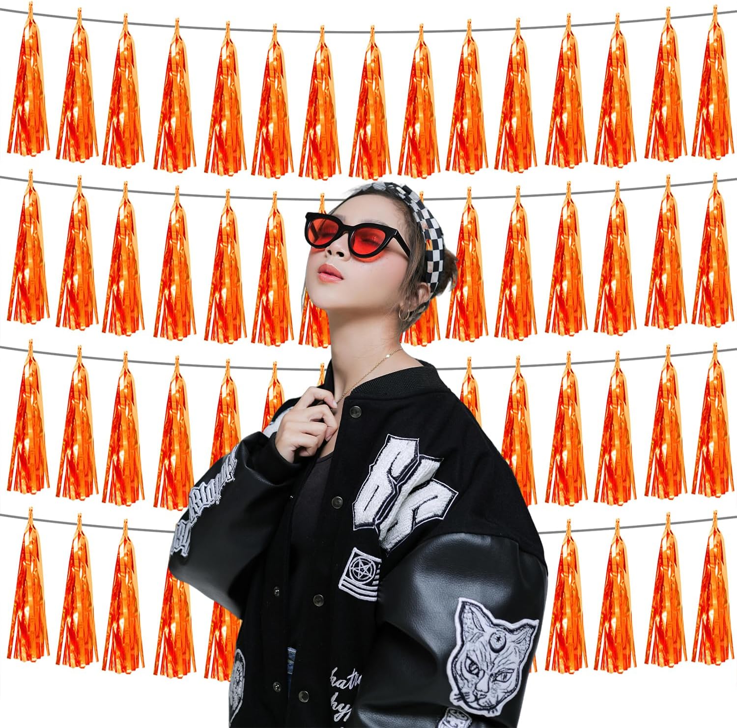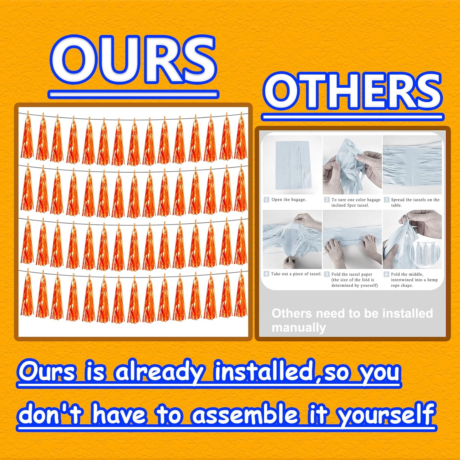 - 【Package Includes】The total length of the orange birthday tassels banner is 40 feet, divided into 4 strips, each 10 feet long. Each banner contains 15 tassels, and each tassel measures 14 inches, for birthday decorations many occasions uitable for Patriotic display, Homecoming Float, Christmas Float, ecorative metal trailers, graduation floats etc