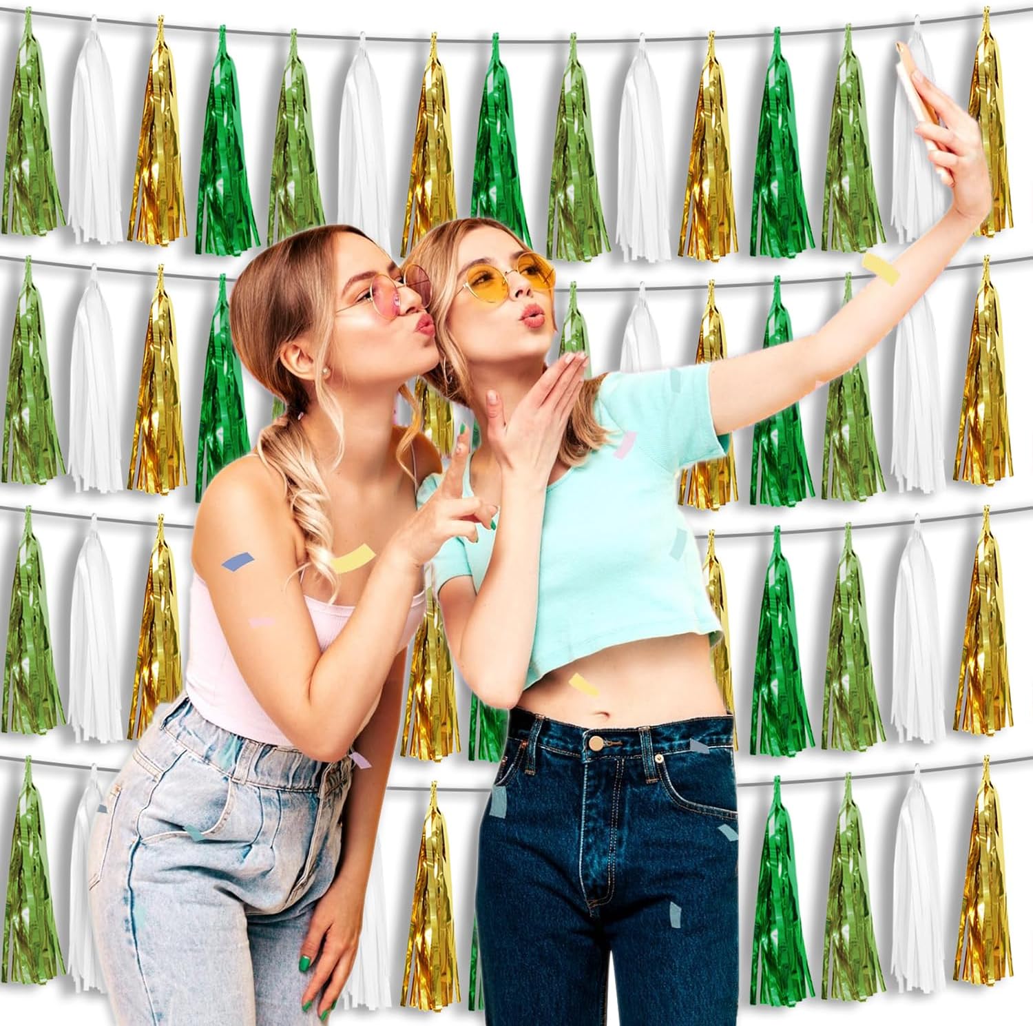 - 【Package Includes】The total length of the green gold birthday tassels banner is 40 feet, divided into 4 strips, each 10 feet long. Each banner contains 15 tassels, and each tassel measures 14 inches, for birthday decorations many occasions uitable for Patriotic display, Homecoming Float, Christmas Float, ecorative metal trailers, graduation floats etc