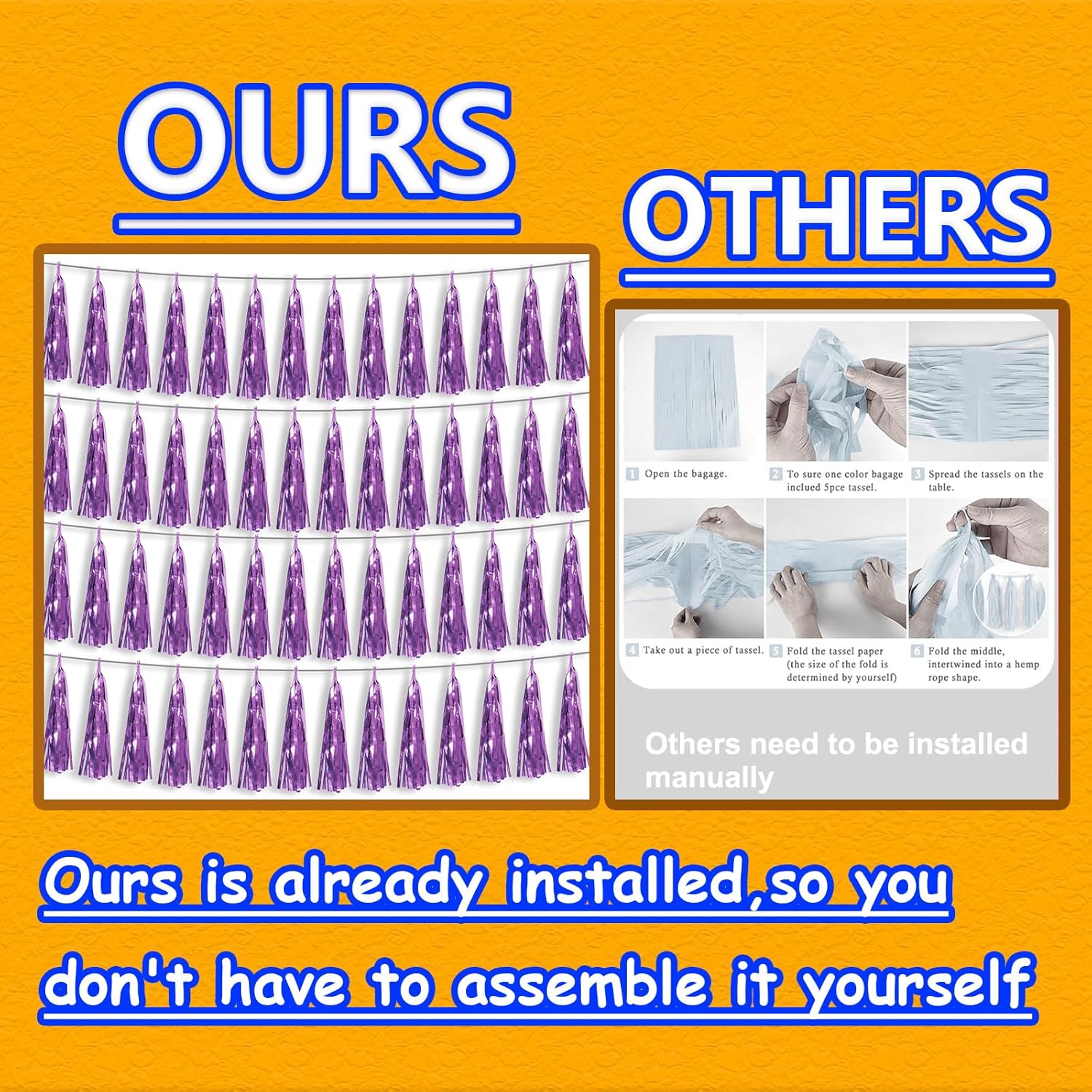 - 【Premium Reusable Tassel Material】: Our glitter fringe garland is made of high-quality PET material, with the virtue of nice craftsmanship and light weight which is safe and recyclable. And the smooth touch makes tassels easy to tidy up. They come with white ribbon for hanging, and garland tassels hang perpendicular to the string, and are adjustable to provide you with the option of spreading the tassels out or piecing them closer together.