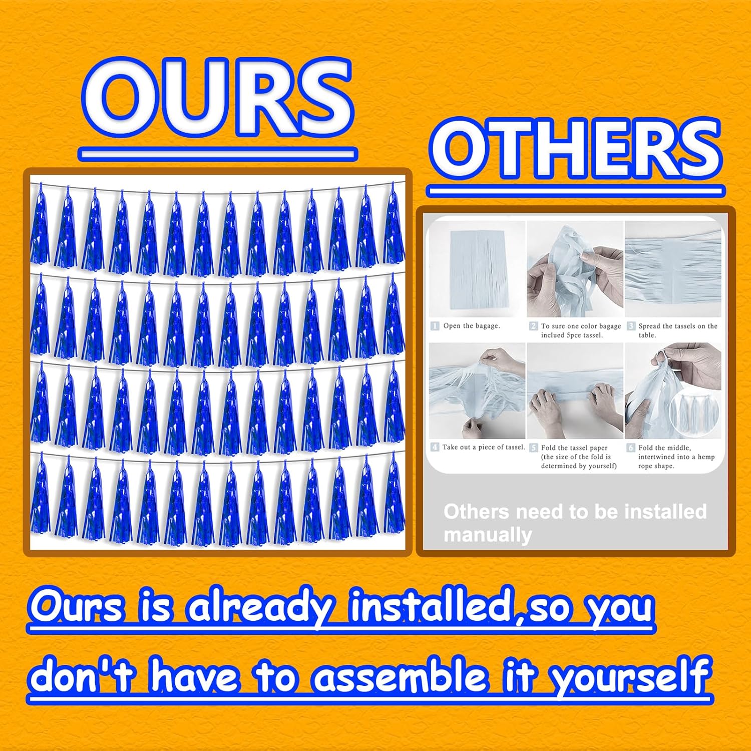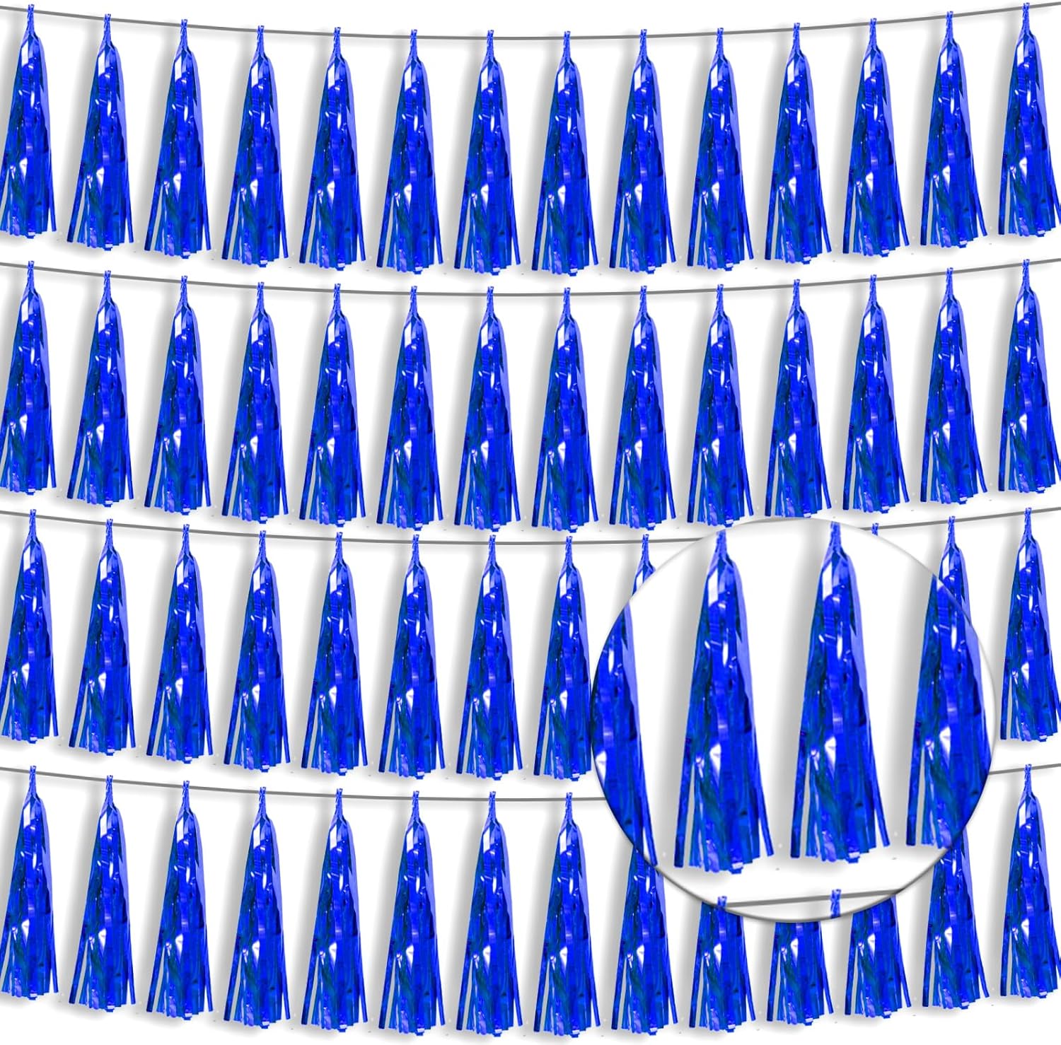 - 【Package Includes】The total length of the blue birthday tassels banner is 40 feet, divided into 4 strips, each 10 feet long. Each banner contains 15 tassels, and each tassel measures 14 inches, for birthday decorations many occasions uitable for Patriotic display, Homecoming Float, Christmas Float, ecorative metal trailers, graduation floats etc