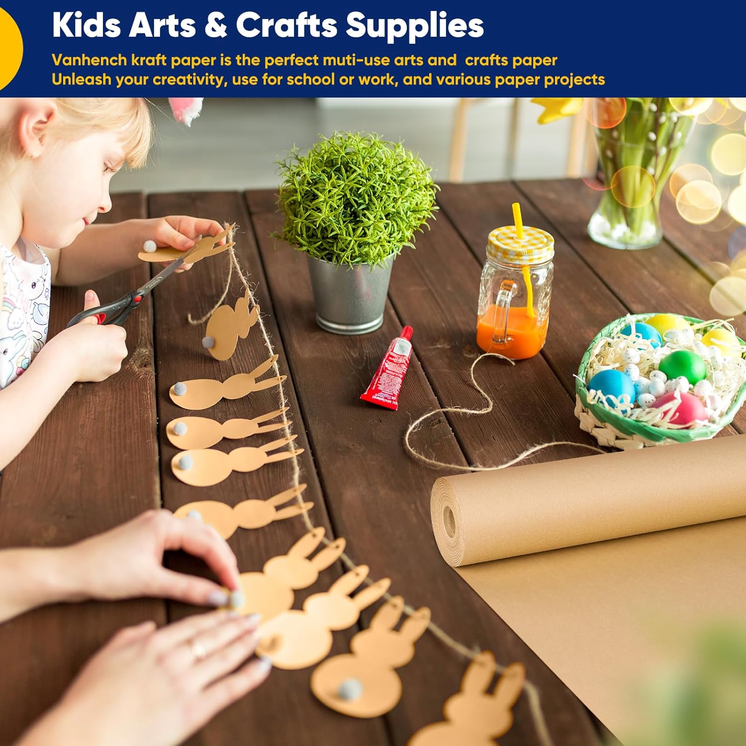 Vanhench Brown Kraft Paper Roll 17.5" x 600" (50') for Gift Wrapping Bulletin Board Paper, Kids Craft Supplies, Art Bouquet Flower Wrapping Paper, Poster Packing Shipping Moving Supplies