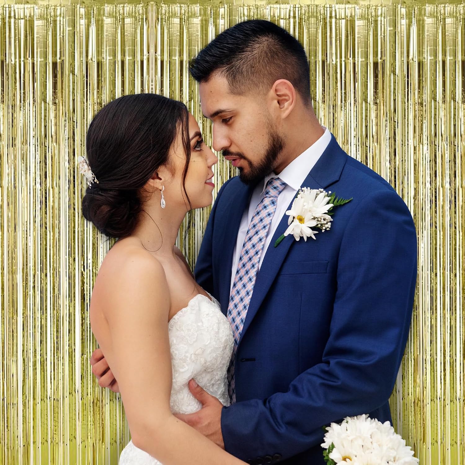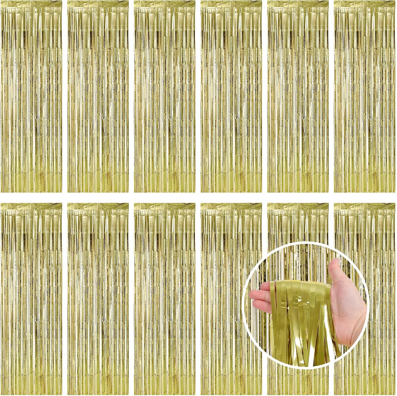 - 【Ideal Party Decoration】Show off your creativity and make your party stand out by using these light gold foil fringe curtains to decorate your party. You can hang them on a door or wall as a surprise entrance to the party, or pair them with LED lights, balloons, and banners to create a shiny party backdrop for different themes and occasions.