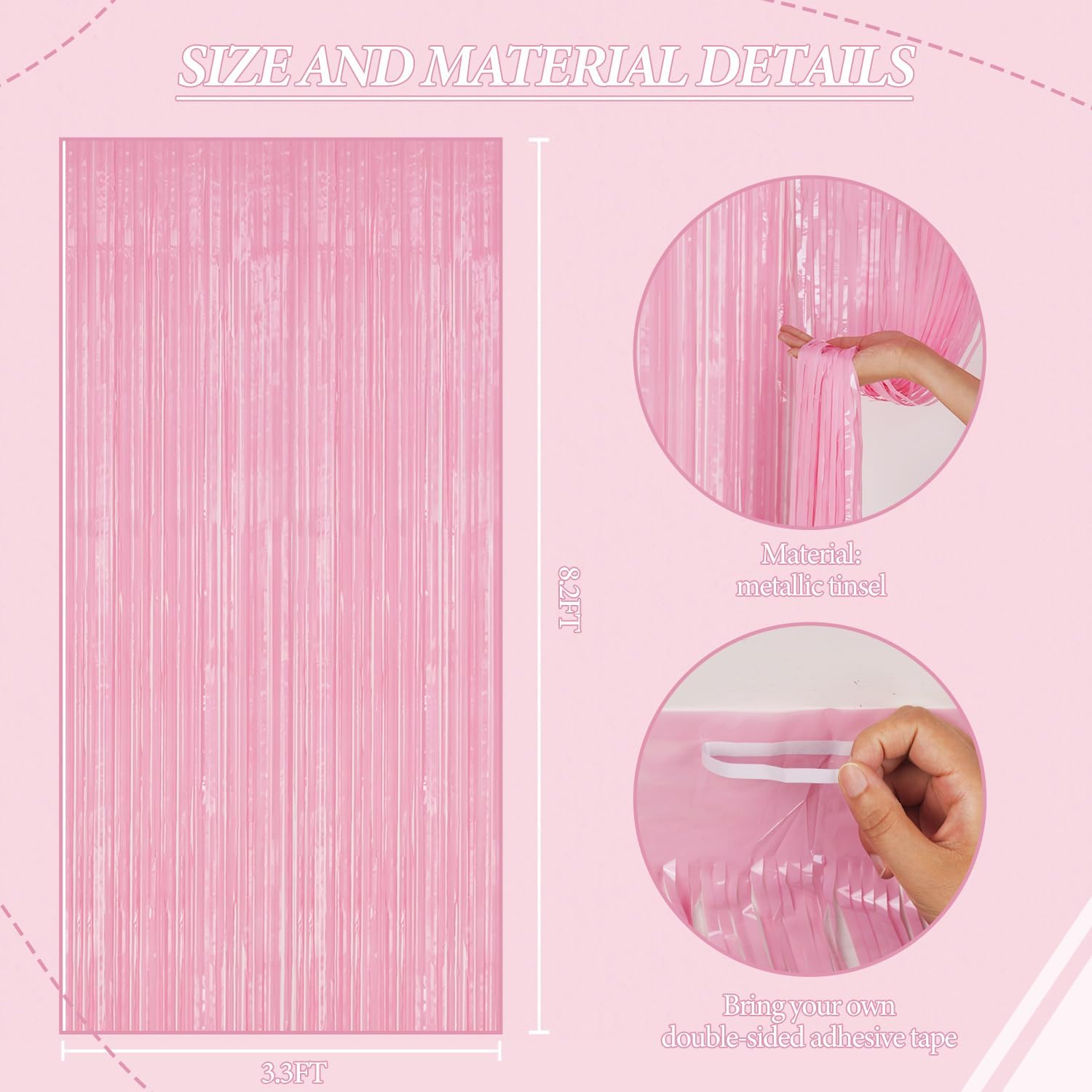 - 【3 Sets of Foil Fringe Curtains】Each package includes 3 sets of 3.3x8.2 ft foil fringe curtains, providing enough length to decorate your party with ease. Perfect for creating a stunning backdrop for any occasion.