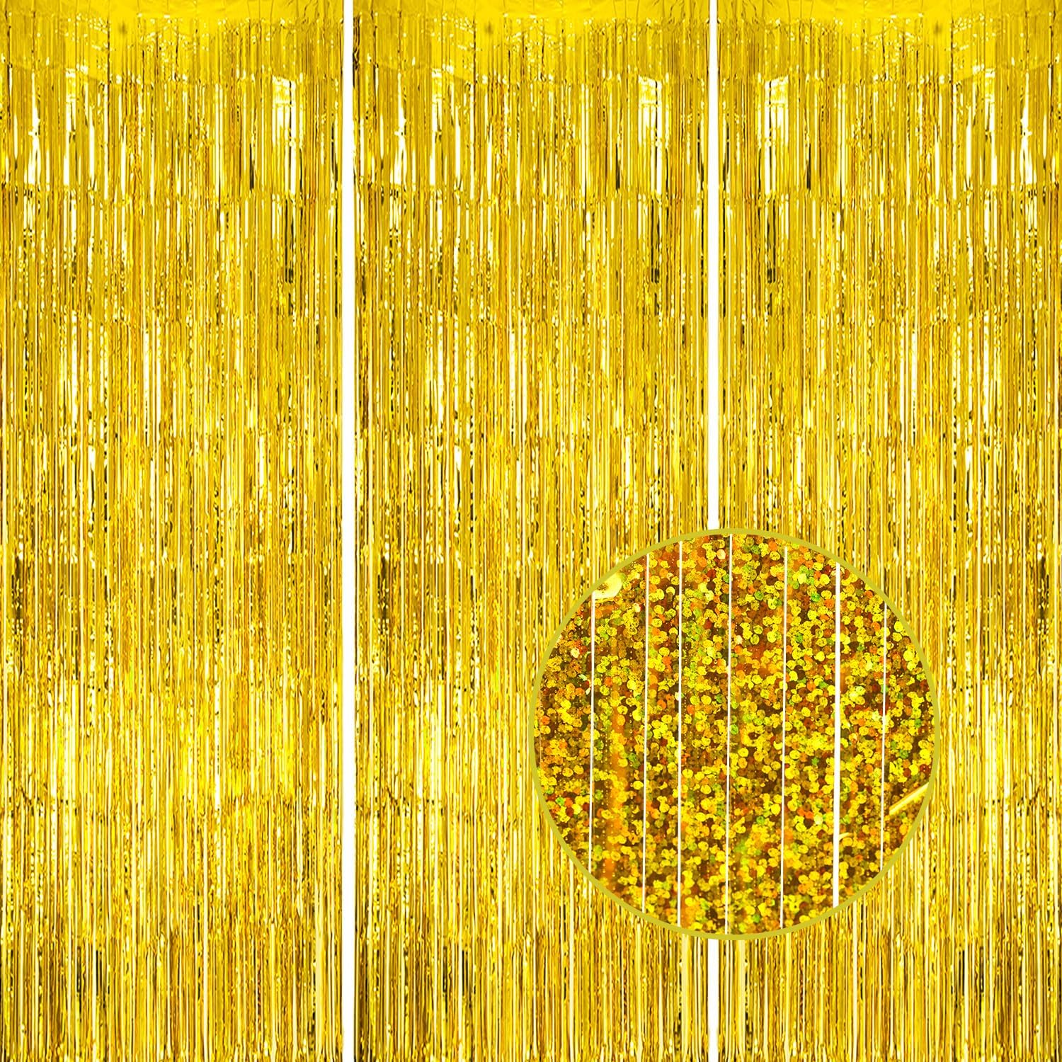 3 Pack Foil Fringe Backdrop - Laser Gold Shiny Tinsel Curtains for Party Decoration/Photo Booth Props - 3.3x8.2 FT Metallic Foil Backdrop for Birthday, Wedding, Graduation, Christmas.