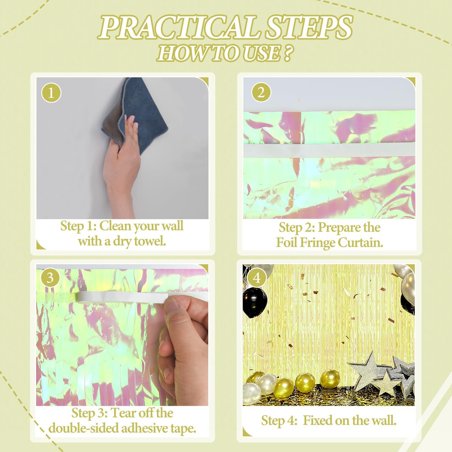 - 【Easy and Convenient Installation】These foil fringe curtains are easy to install and can be quickly hung on smooth surfaces using the included double-sided adhesive tape. No extra tools or materials required.